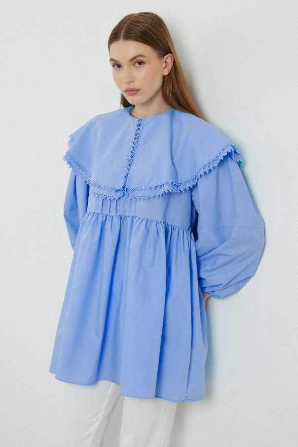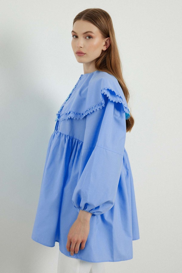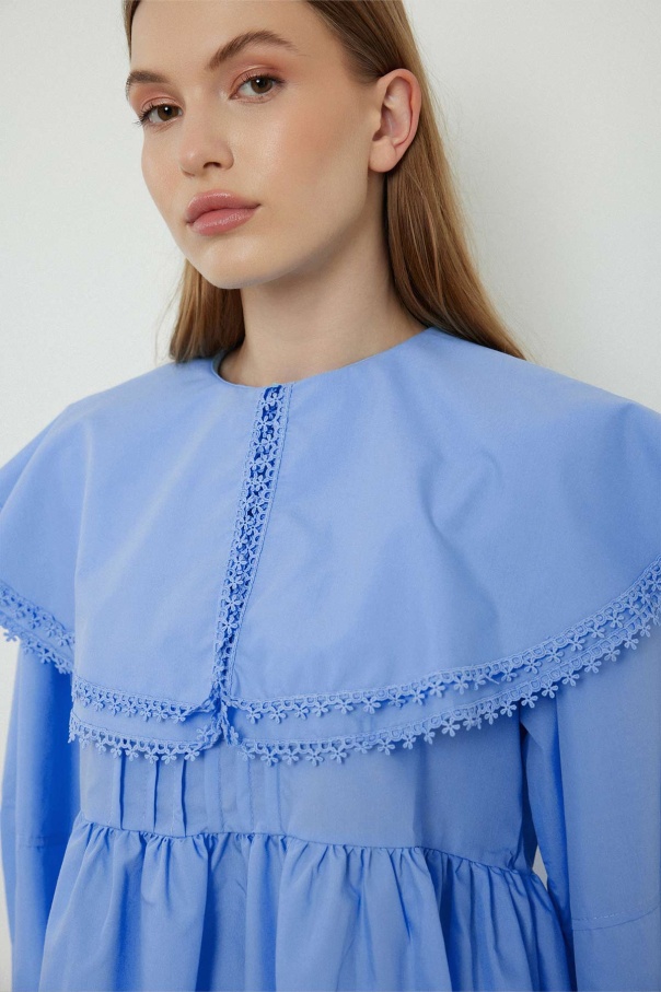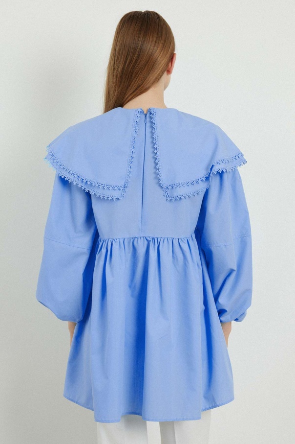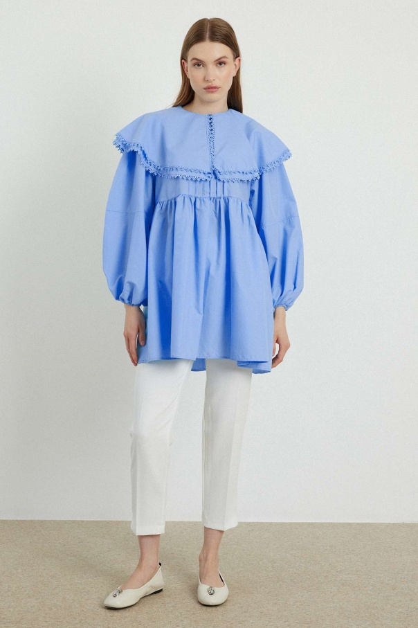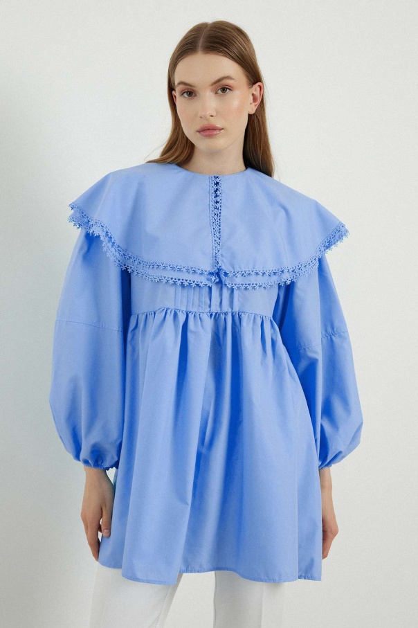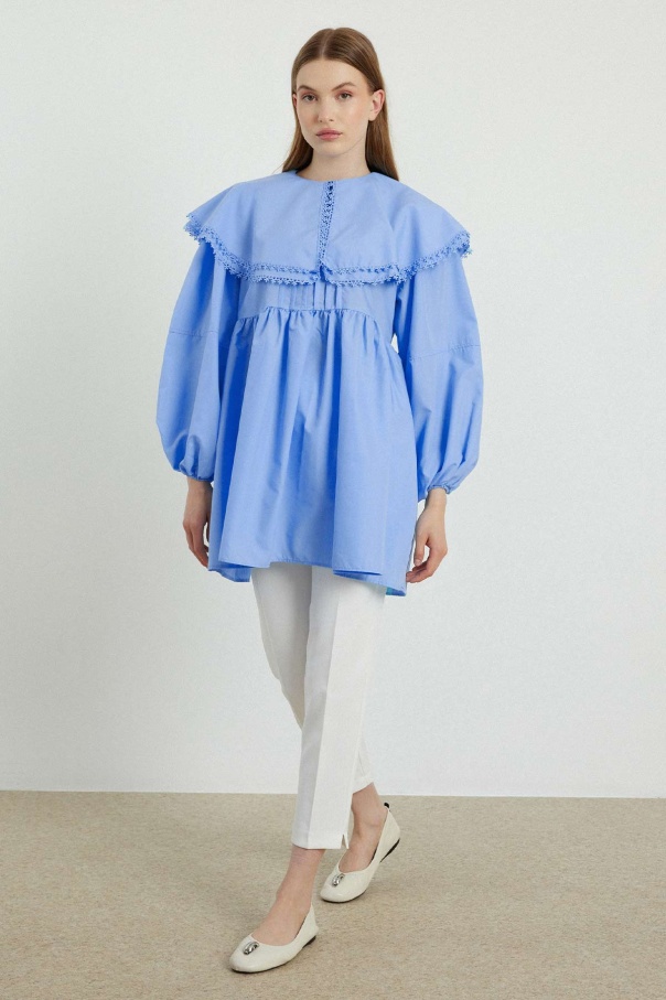 Yakalı Mavi Poplin Tunik