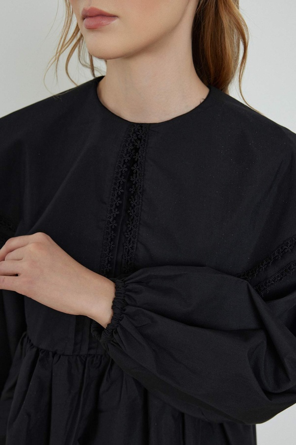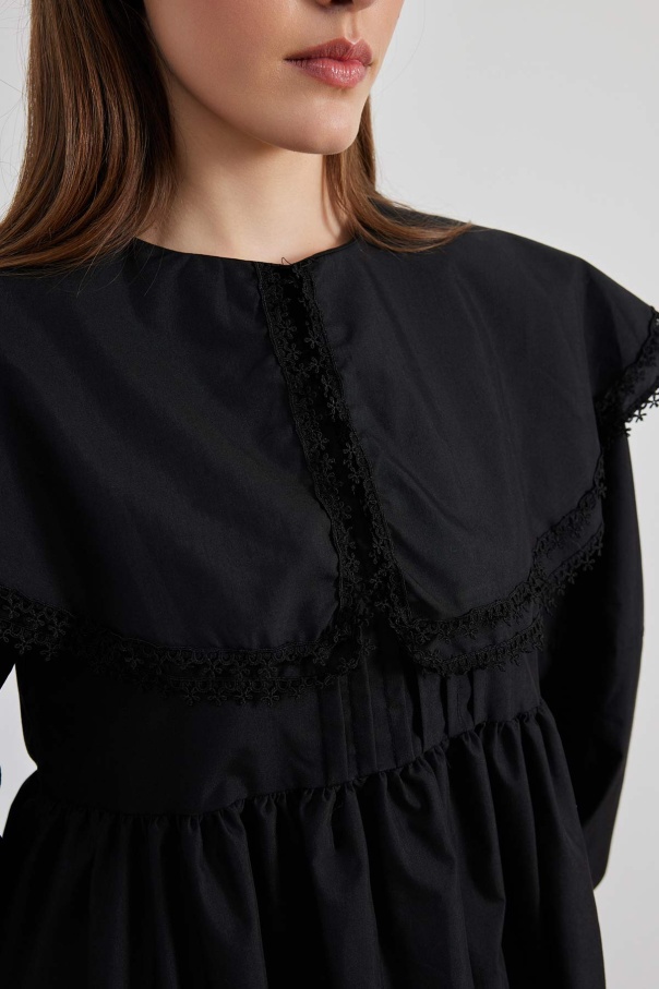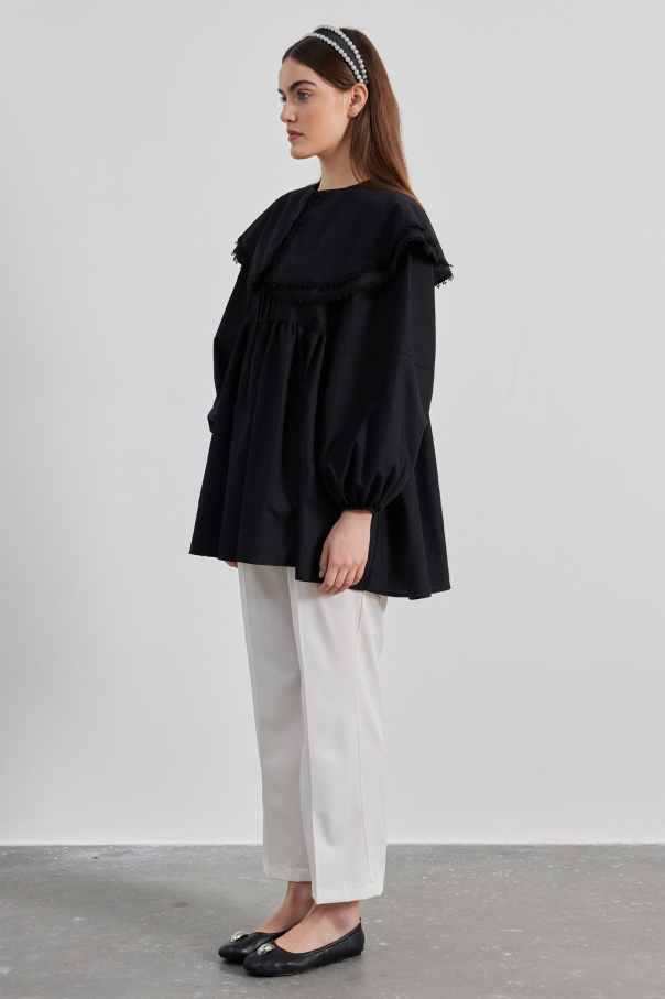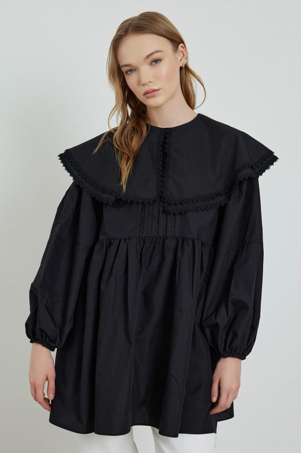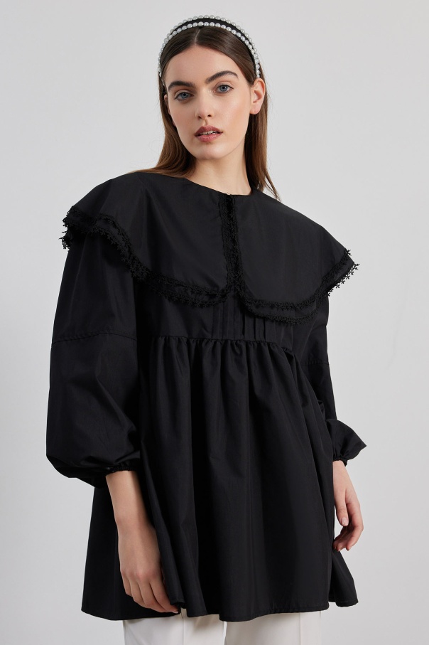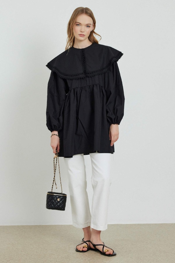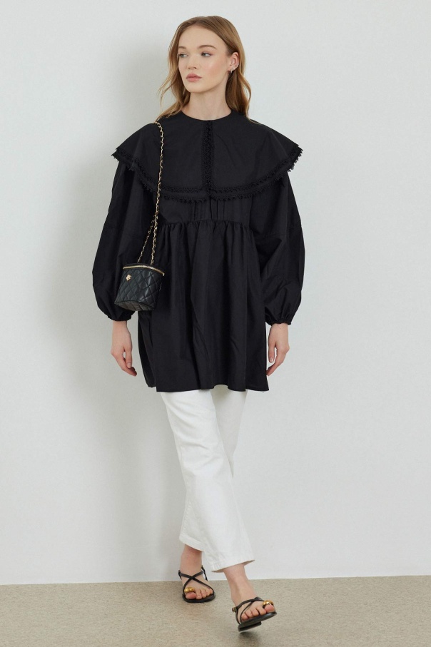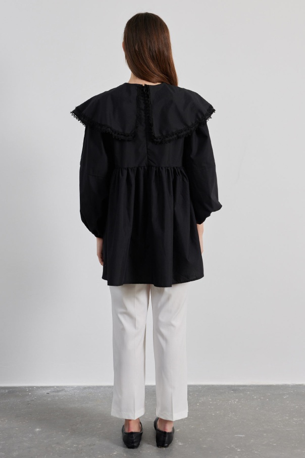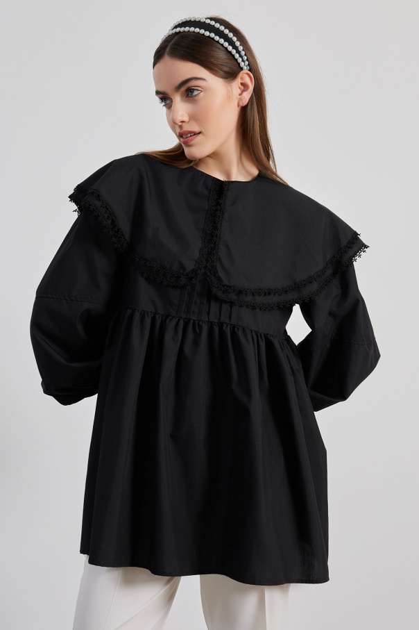 Yakalı Siyah Poplin Tunik