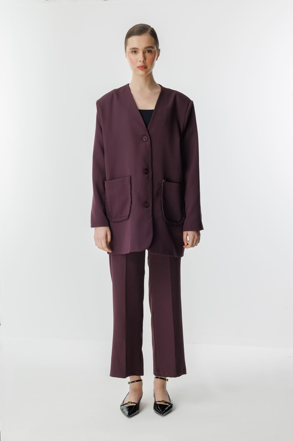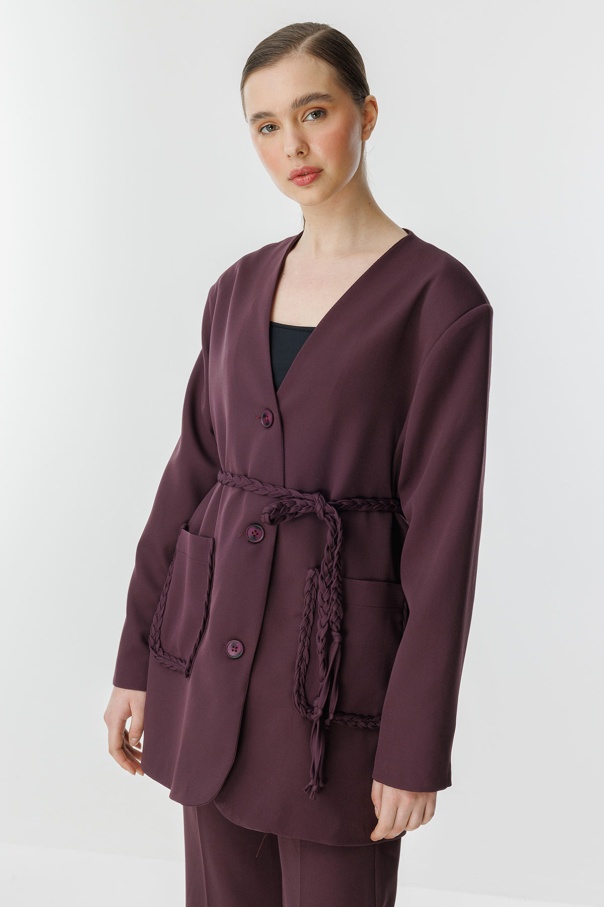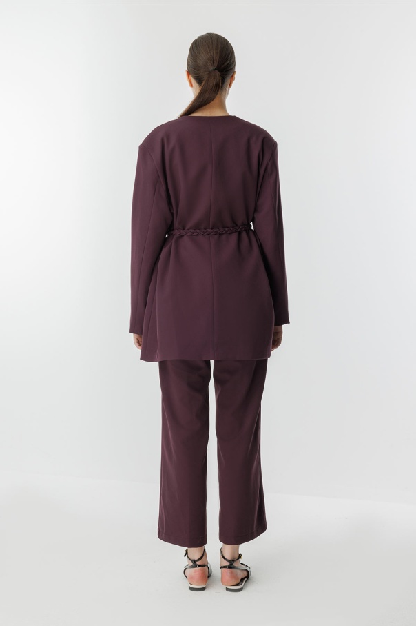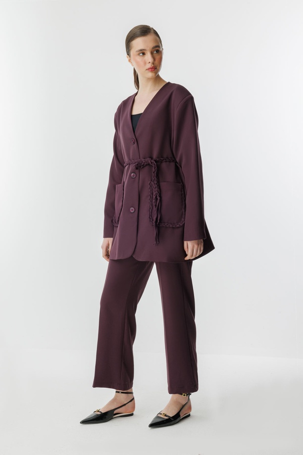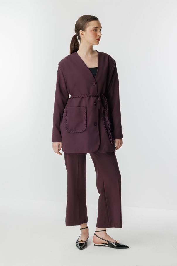 Meri Örme İp Detaylı Bordo Ceket Takım