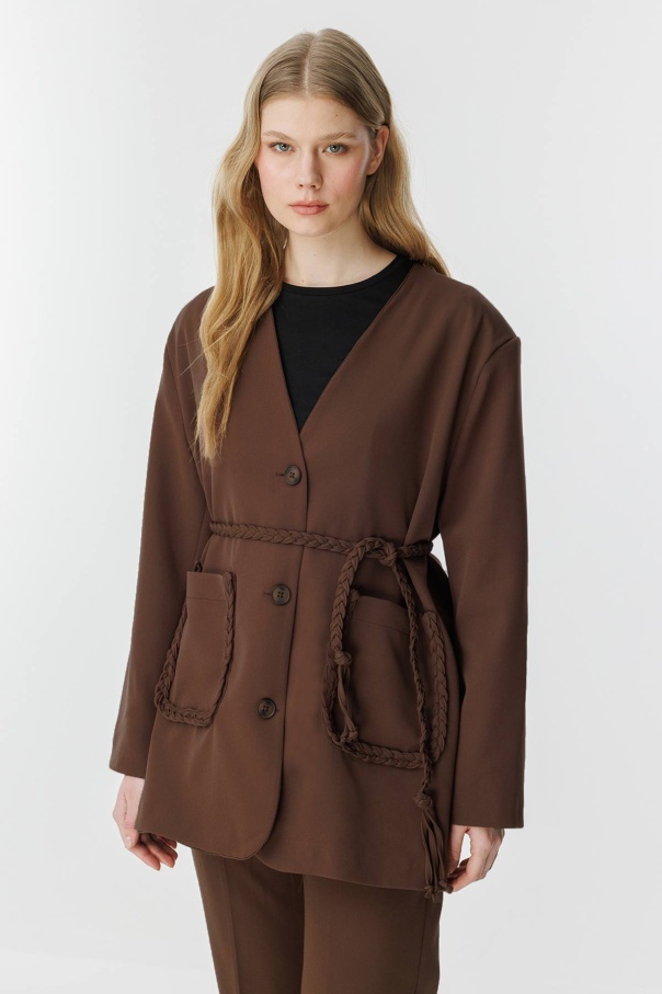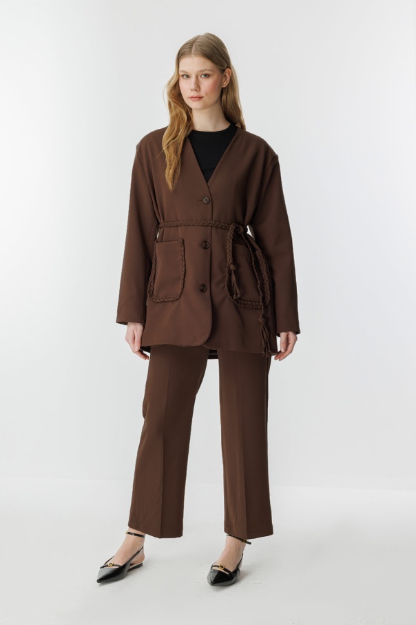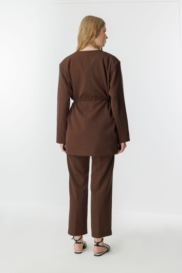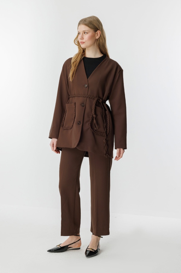 Meri Örme İp Detaylı Kahve Ceket Takım