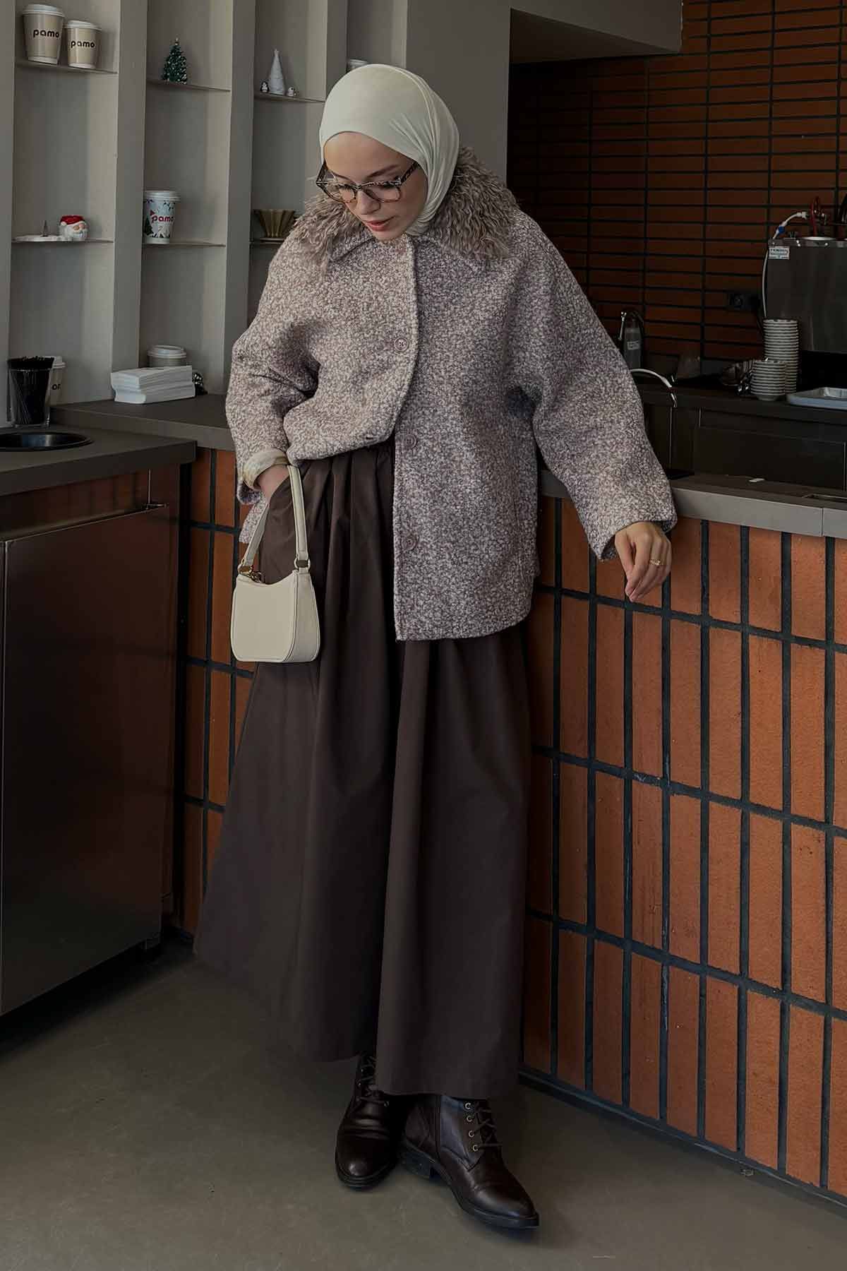 Kürk Yaka Kısa Vizon Mont