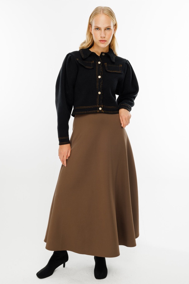 Metal Düğmeli Triko Bomber Siyah Ceket
