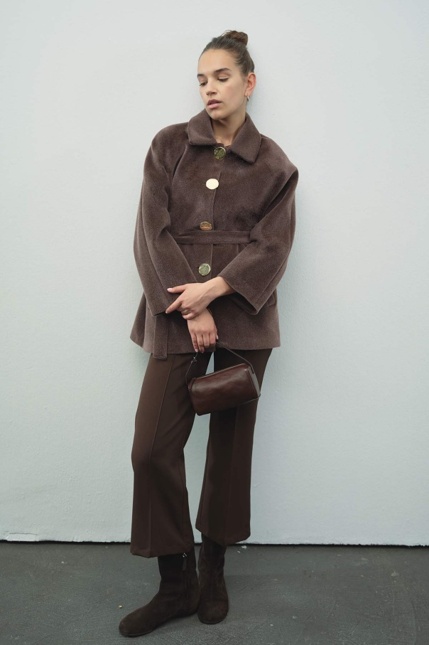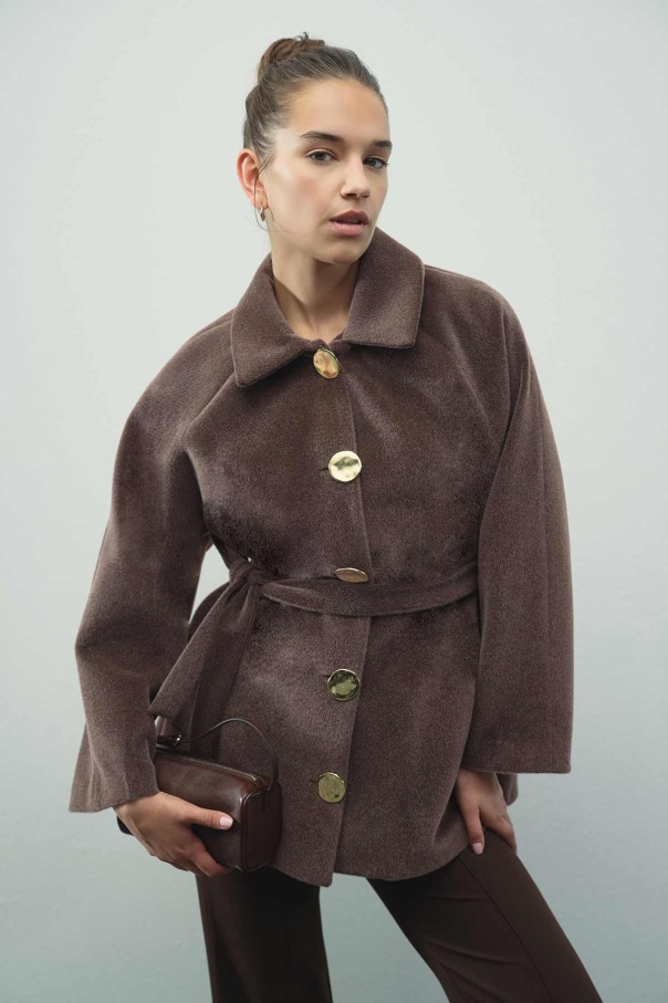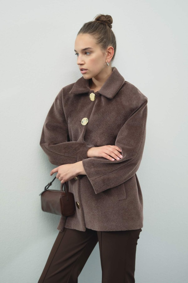Milena Gold Düğmeli Kahve Ceket Kaban
