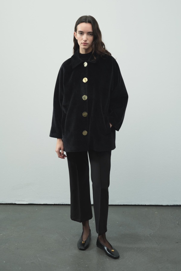 Milena Gold Düğmeli Siyah Ceket Kaban