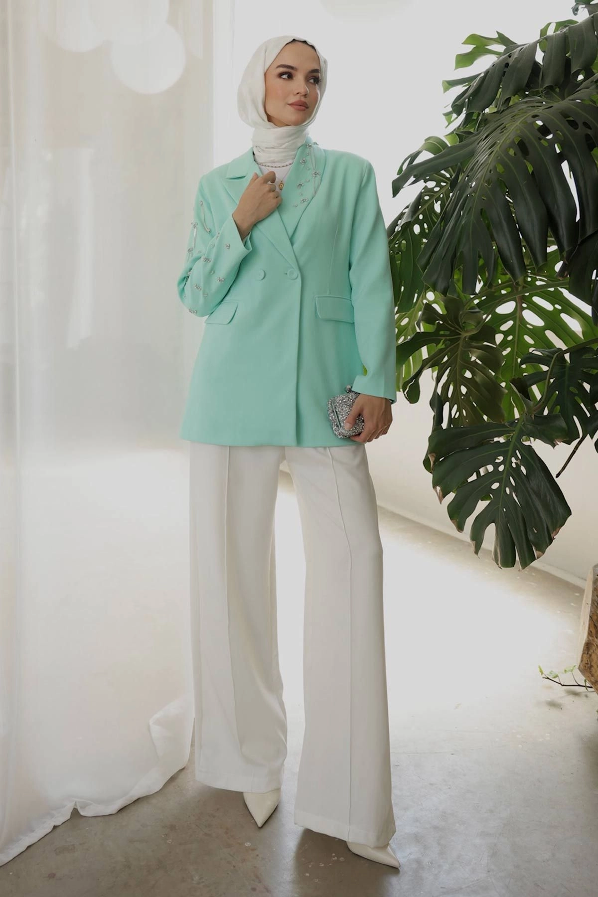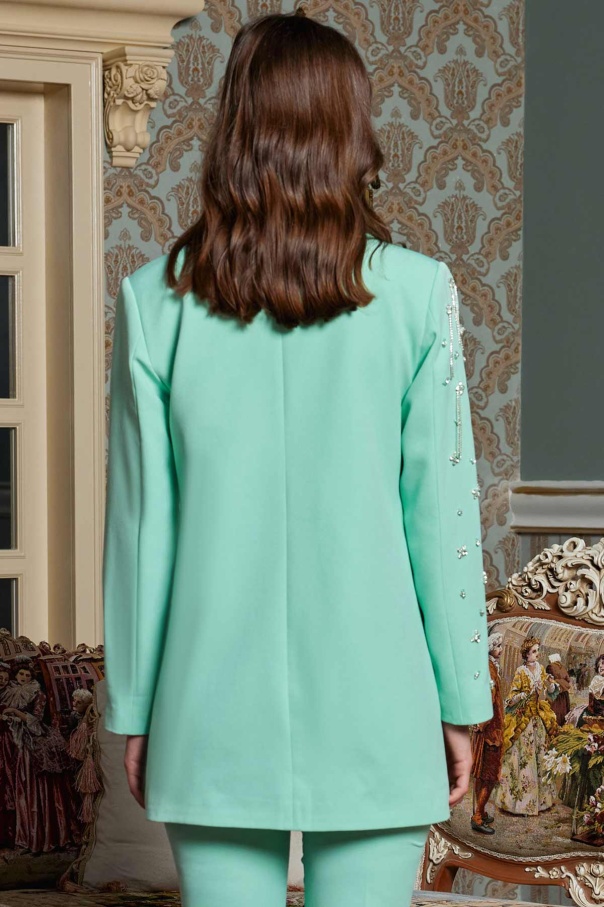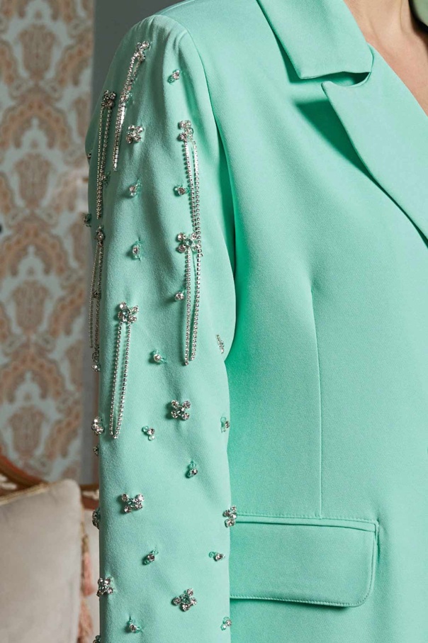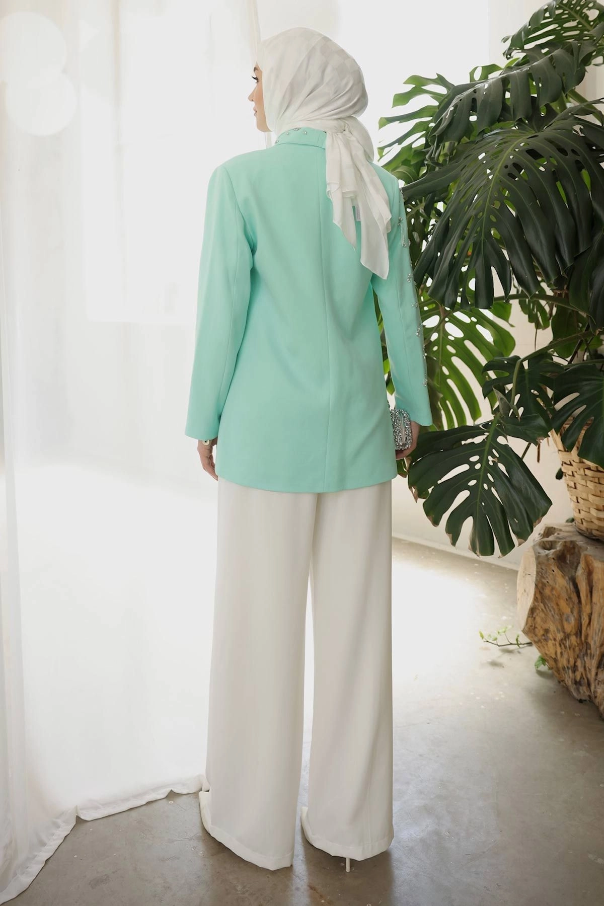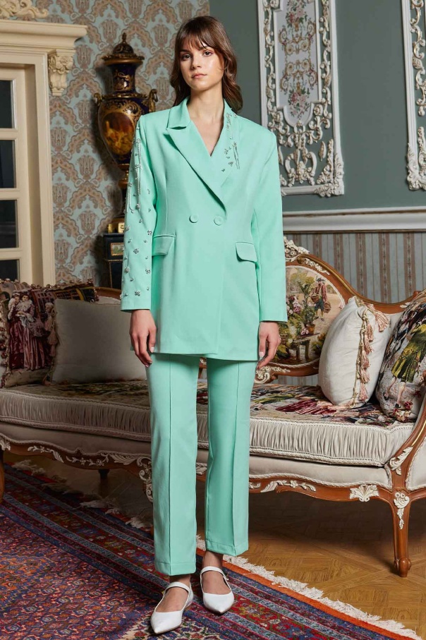 Yaka Ve Kolları Taş İşlemeli Mint Yeşili Blazer Ceket