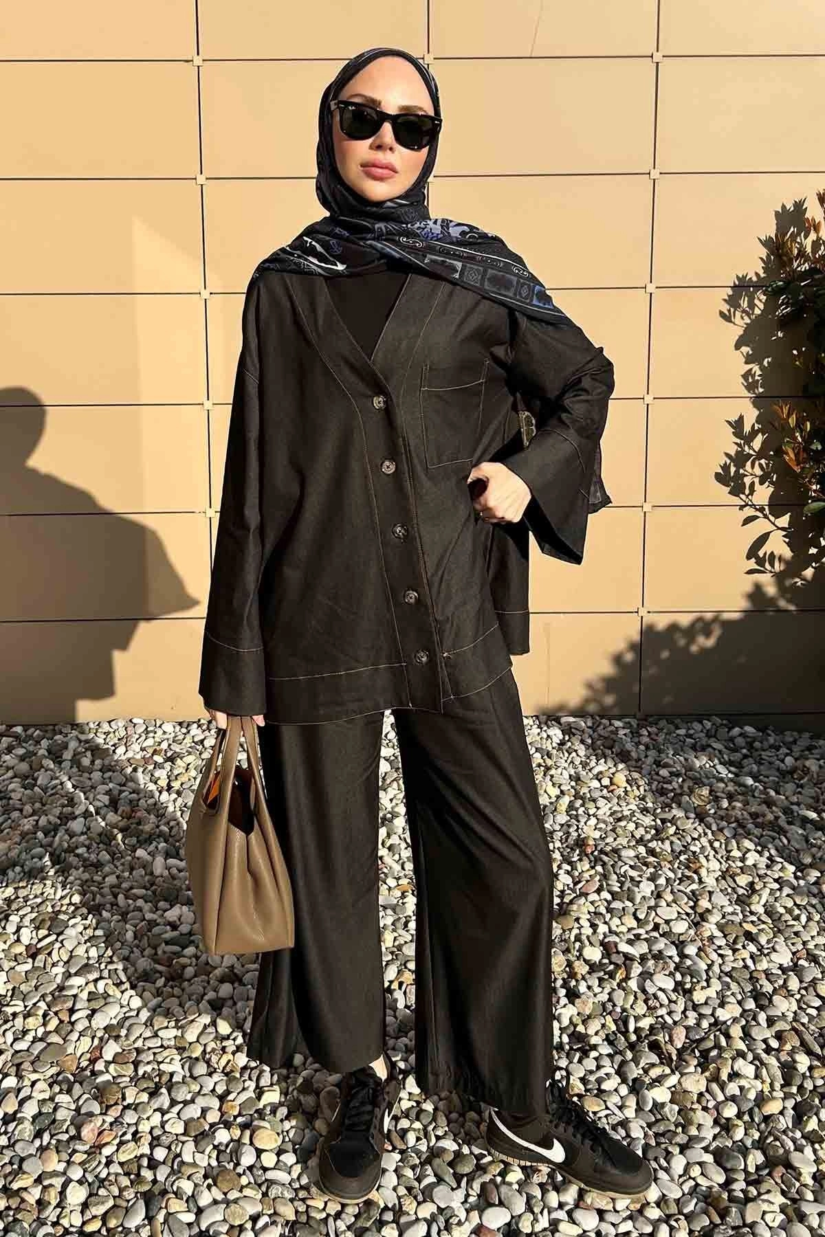 Miyaki Tensel Kot Pantolon Siyah Takım