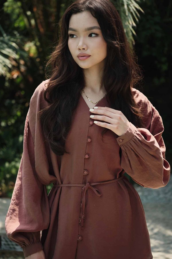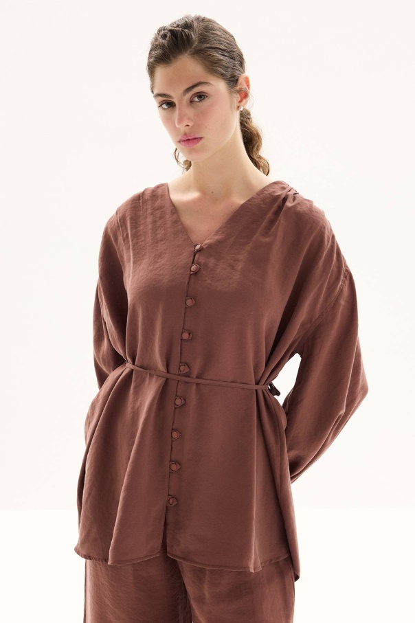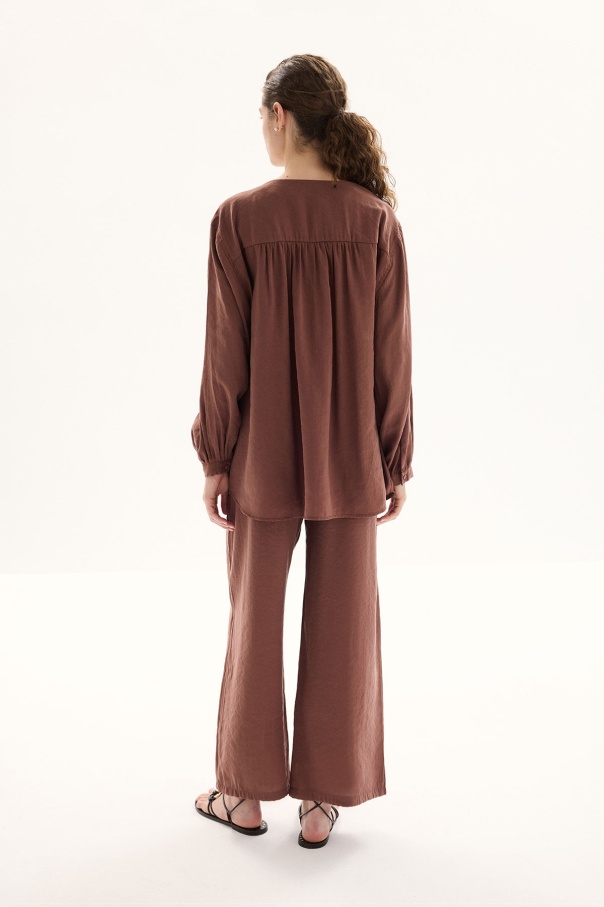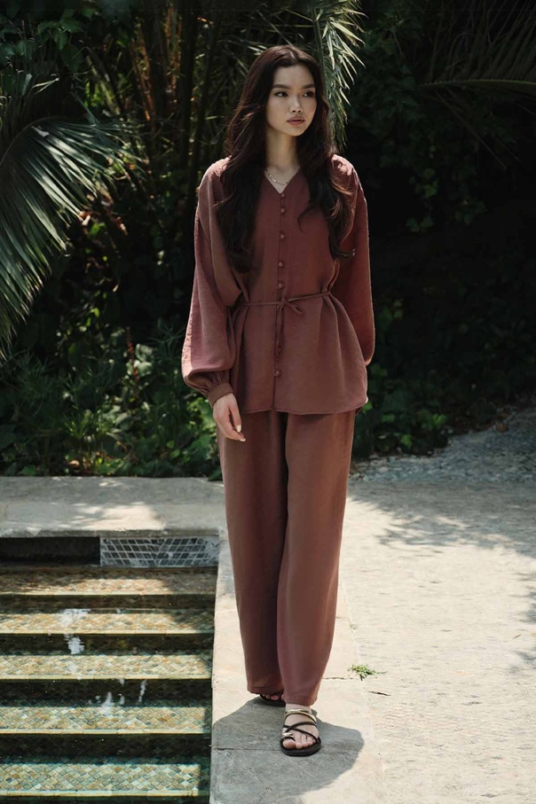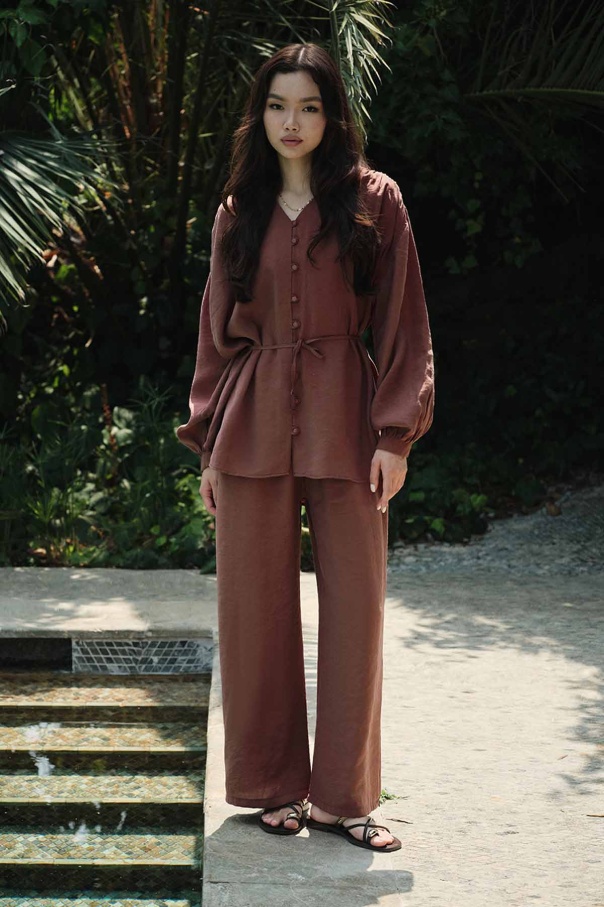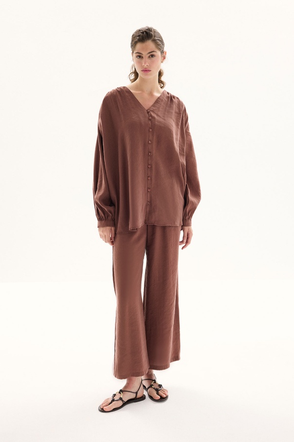 Modal Birit Düğme Detaylı Bakır Pantolon Takım