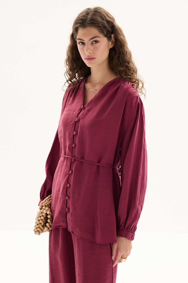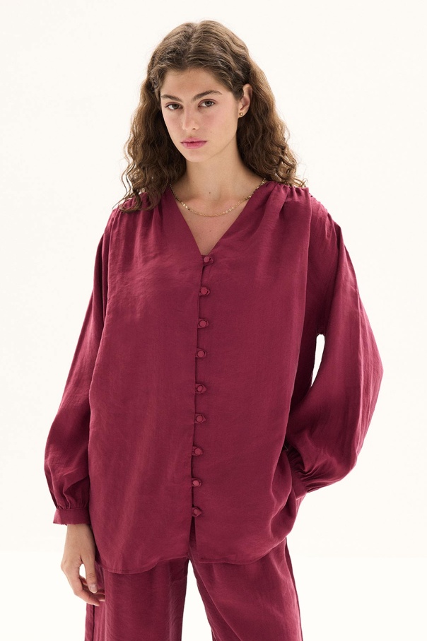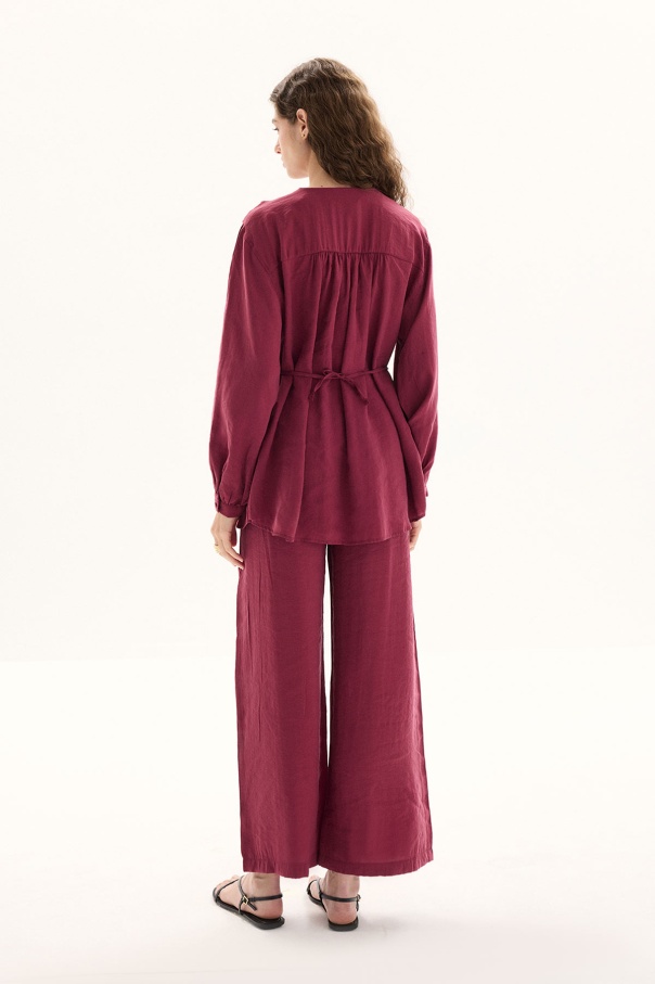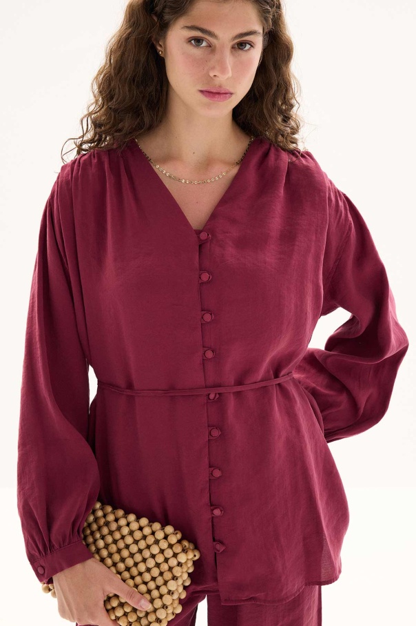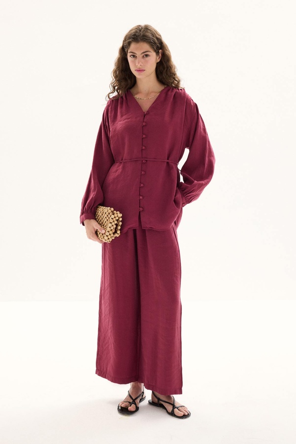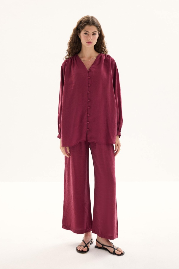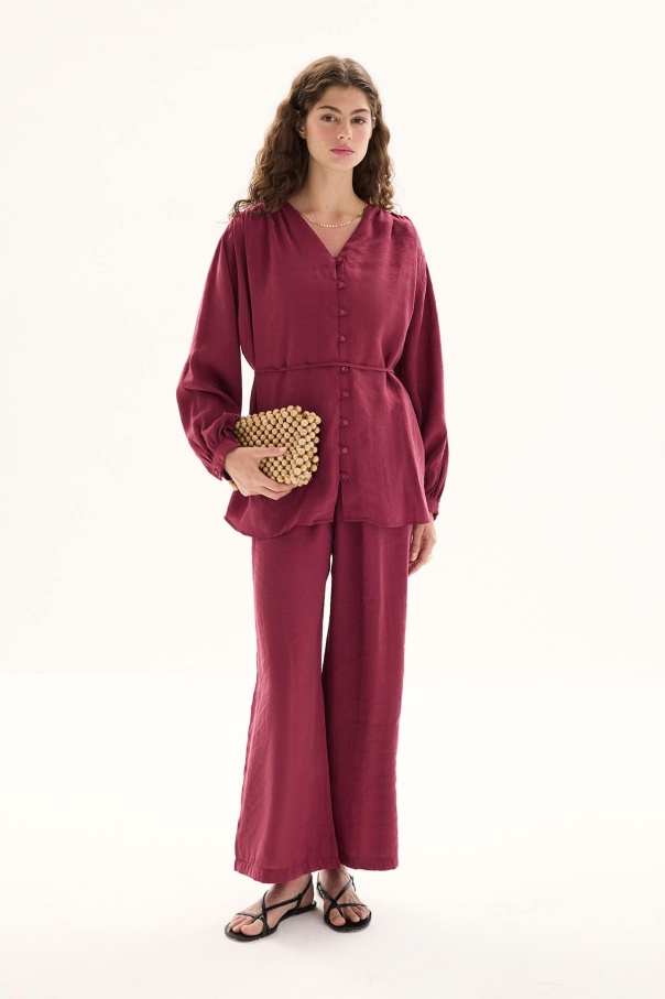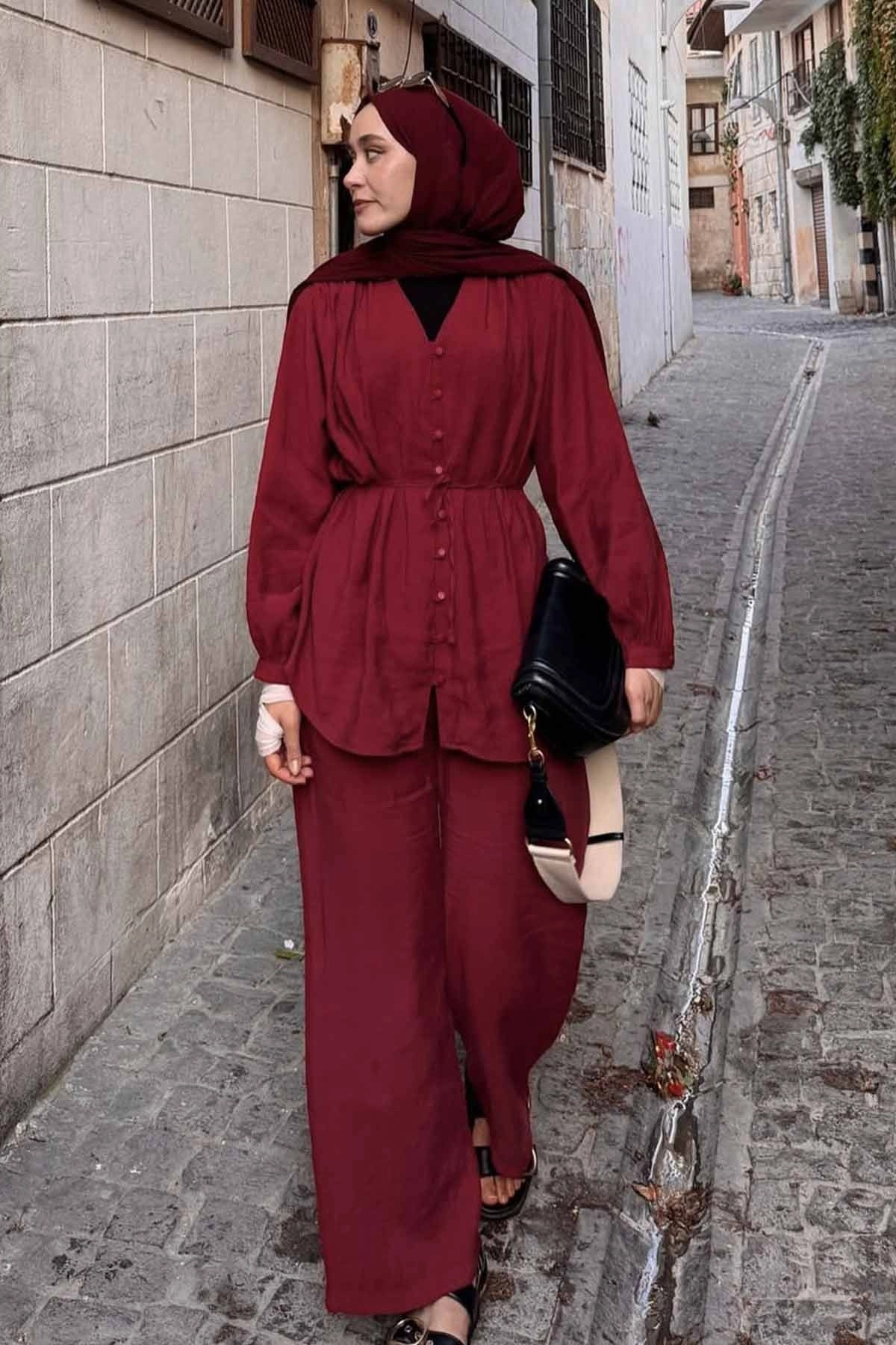 Modal Birit Düğme Detaylı Bordo Pantolon Takım