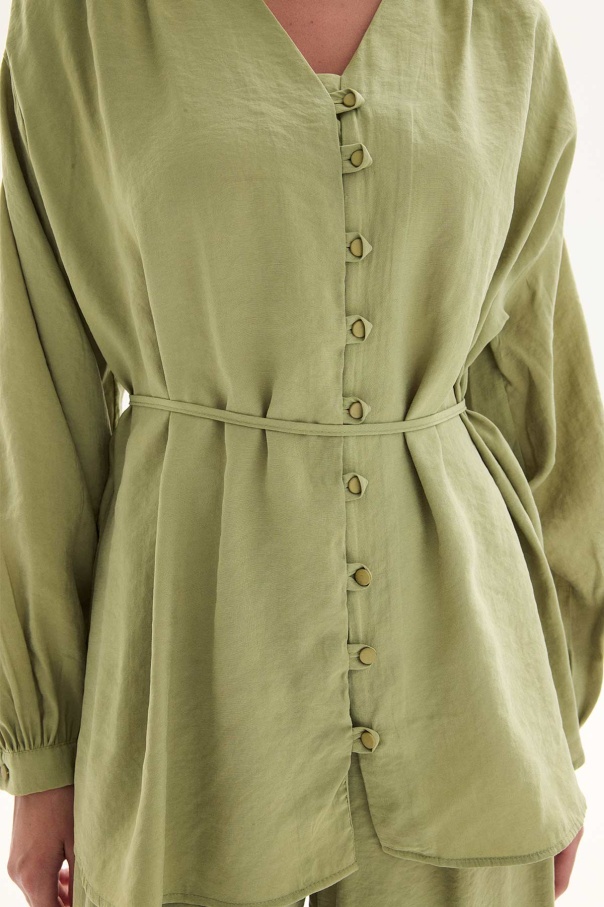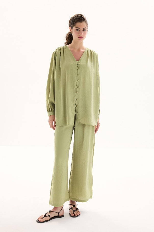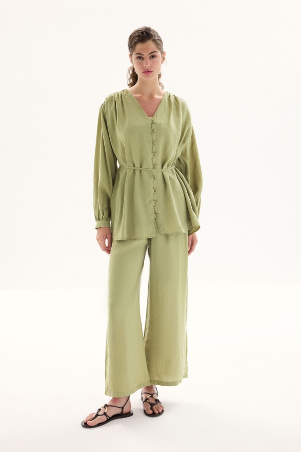 Modal Birit Düğme Detaylı Haki Pantolon Takım