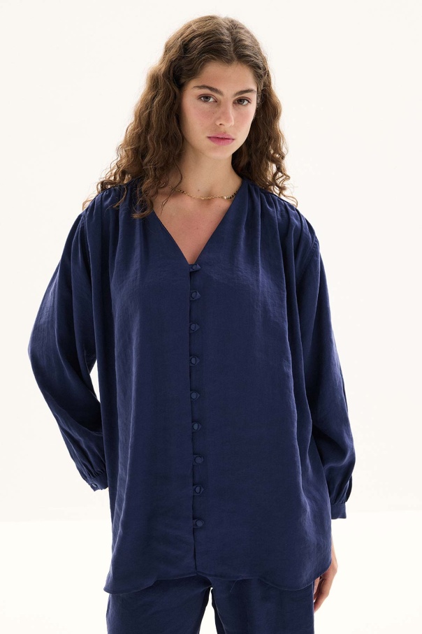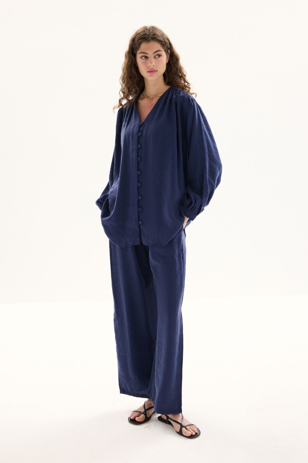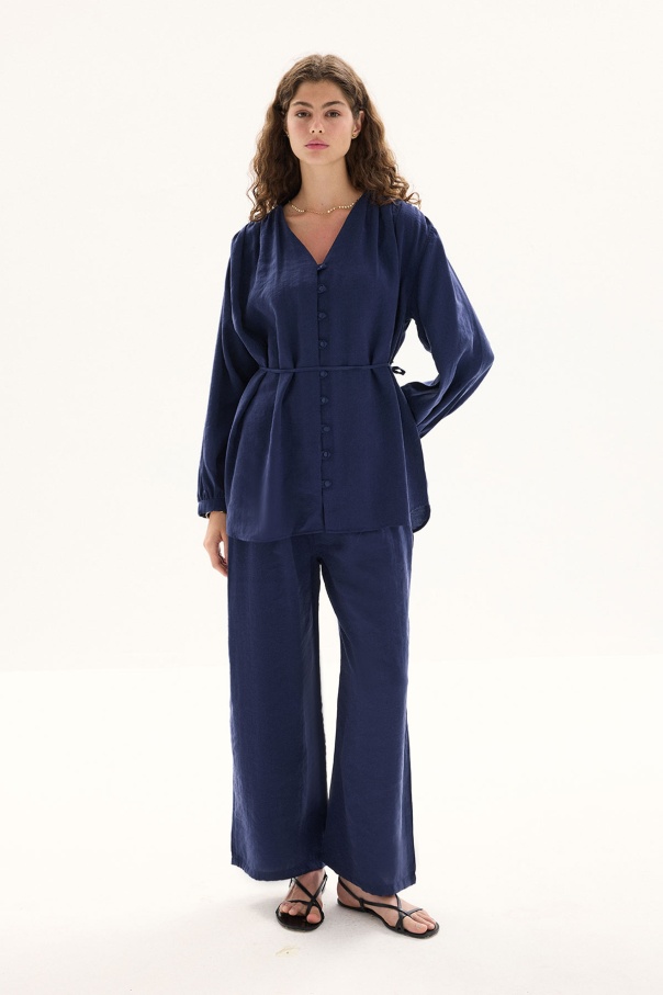 Modal Birit Düğme Detaylı Lacivert Pantolon Takım