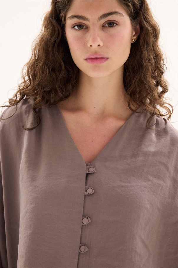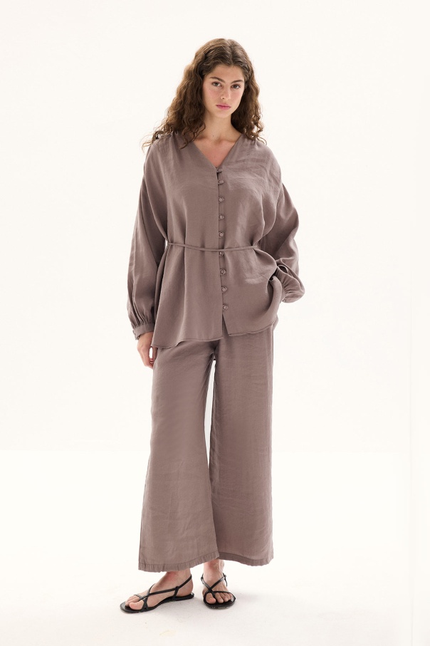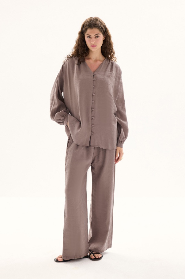 Modal Birit Düğme Detaylı Vizon Pantolon Takım
