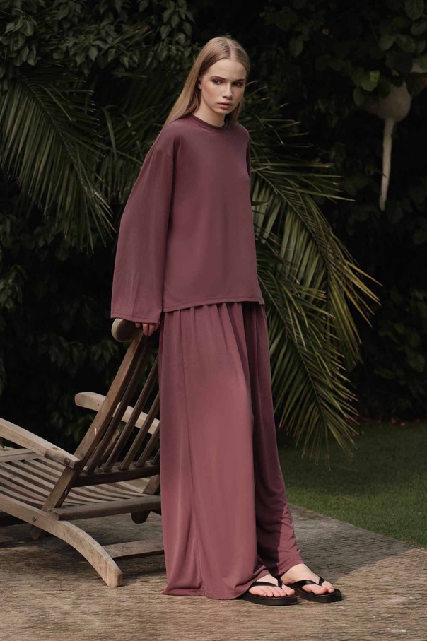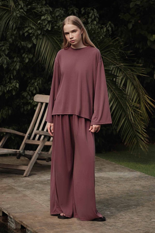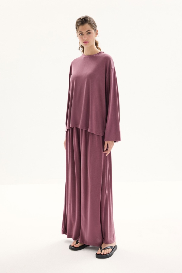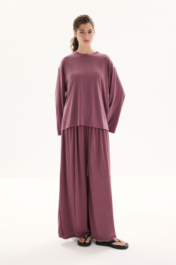 Modal İçeren Rahat Kesim Gül Kurusu Pantolon Takım