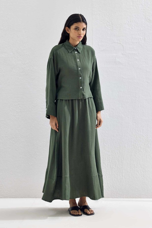 Müslin Zümrüt Yeşili Etek Takım