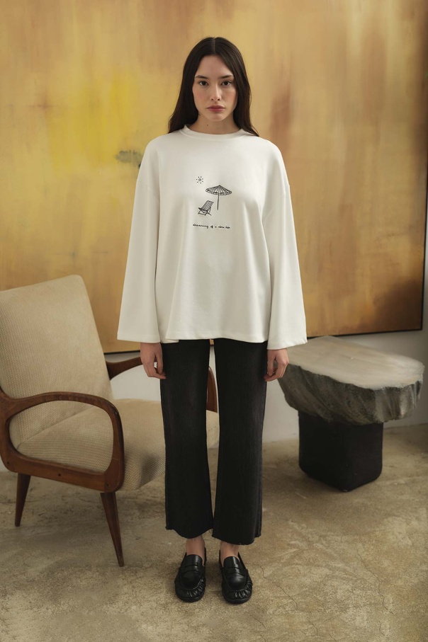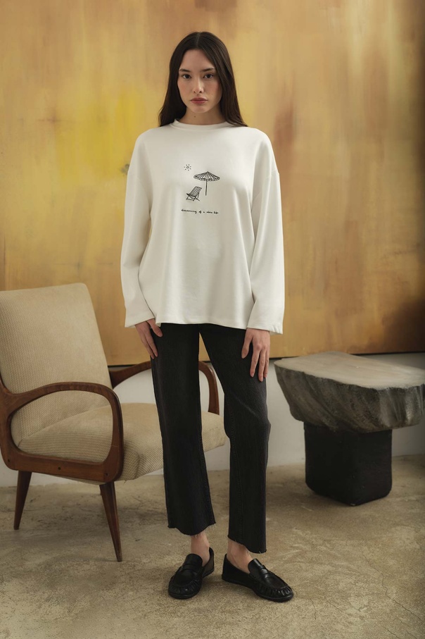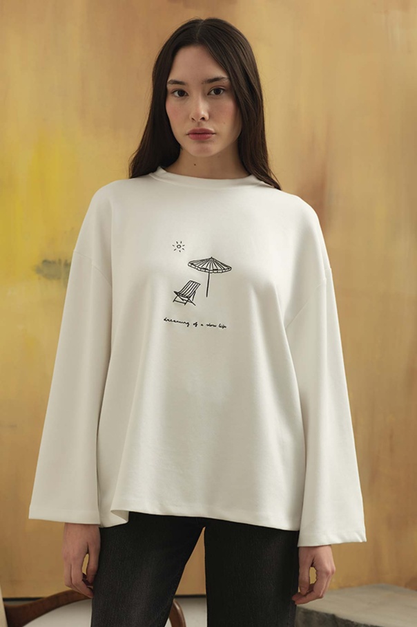 Nakış Desenli Kırık Beyaz Bluz