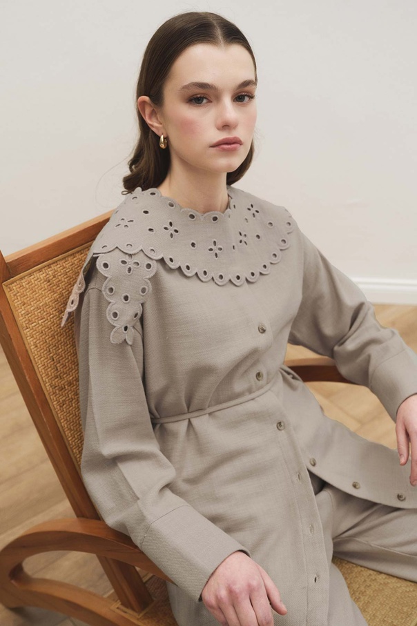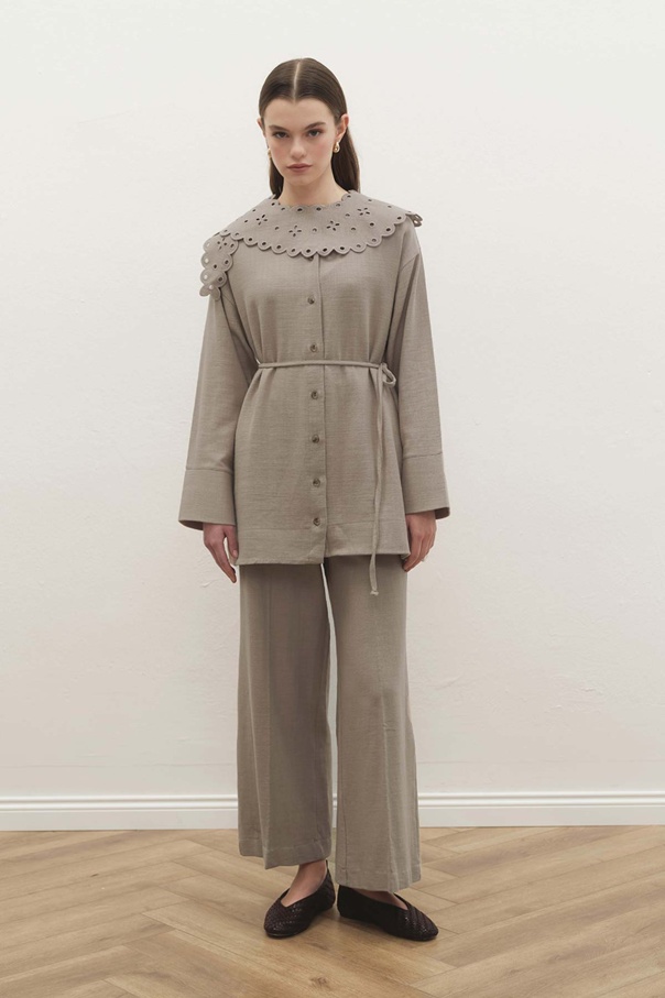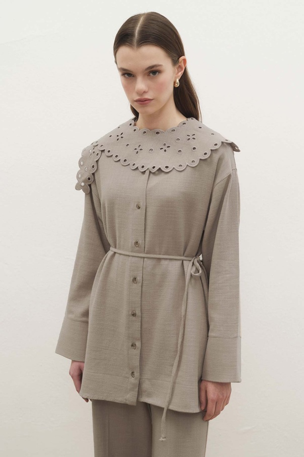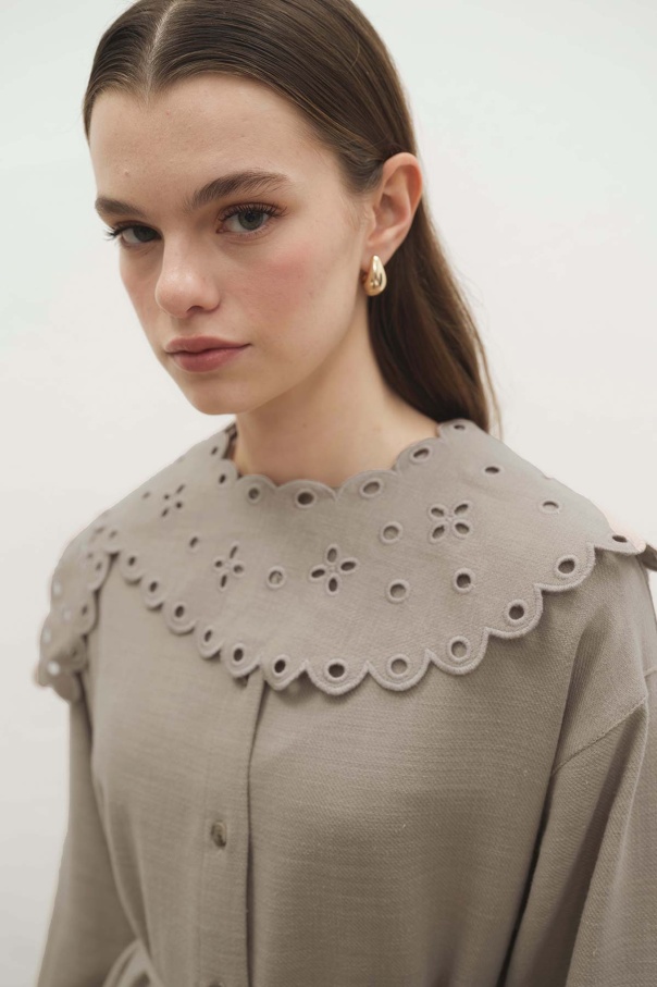 Nakış Detaylı Bebe Yaka Vizon Gömlek