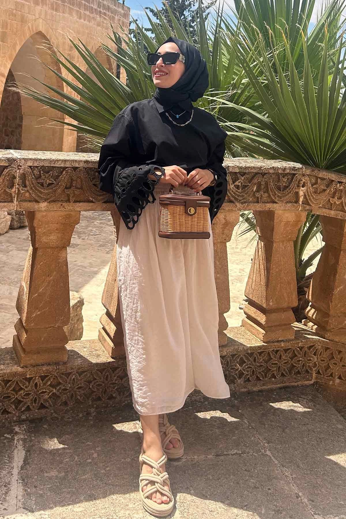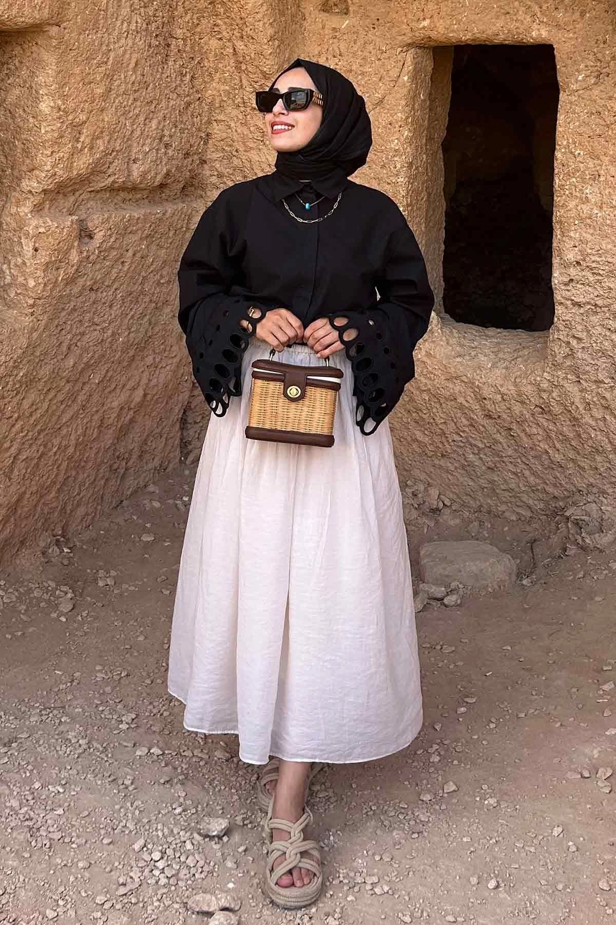 Nakış İşlemeli Detaylı Gömlek - Siyah