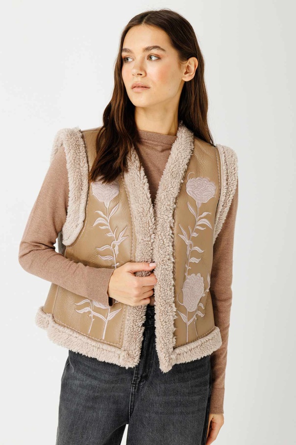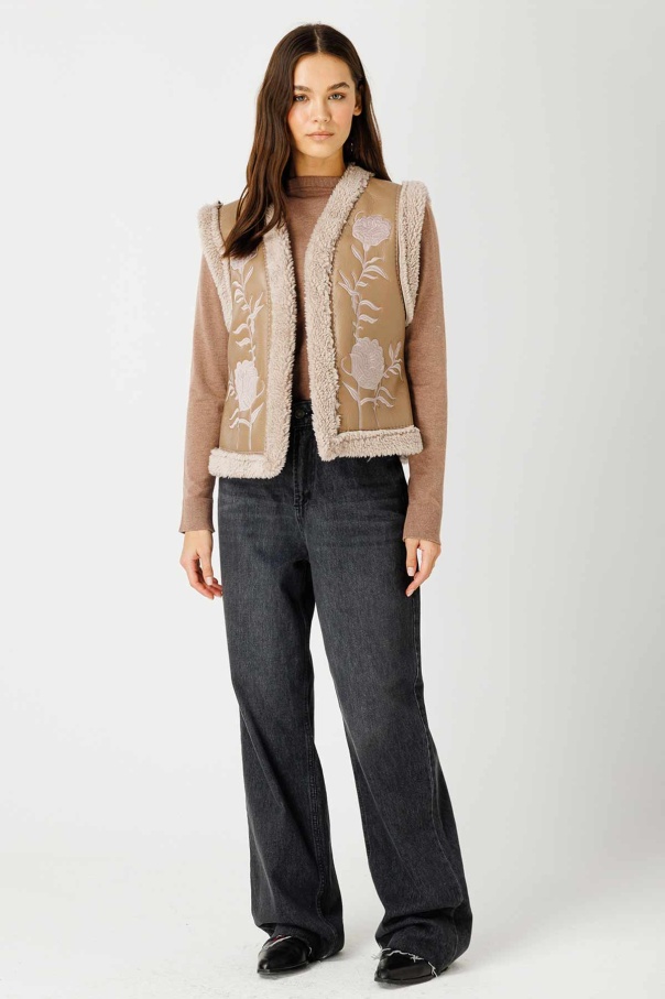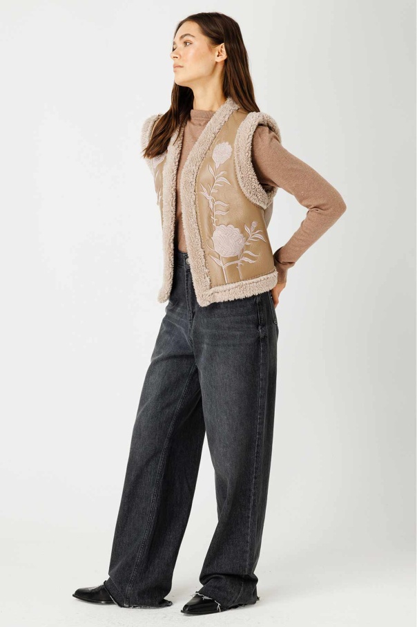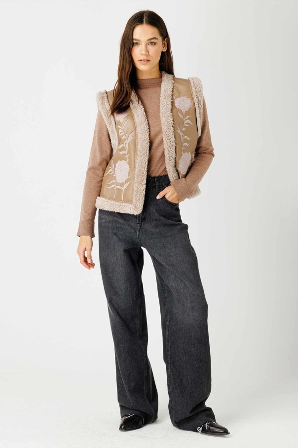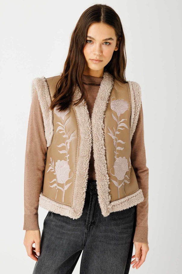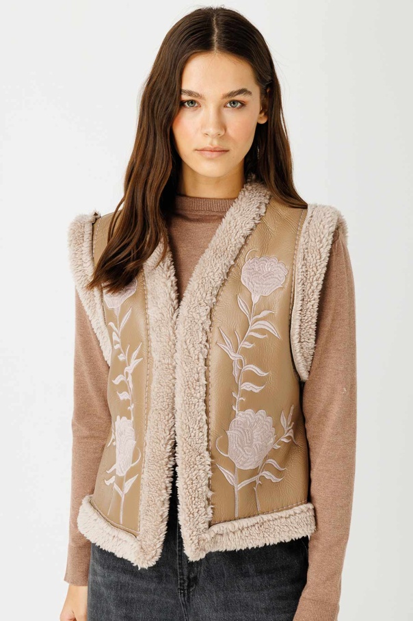 Nakış İşlemeli Sütlü Kahve Kovboy Yelek