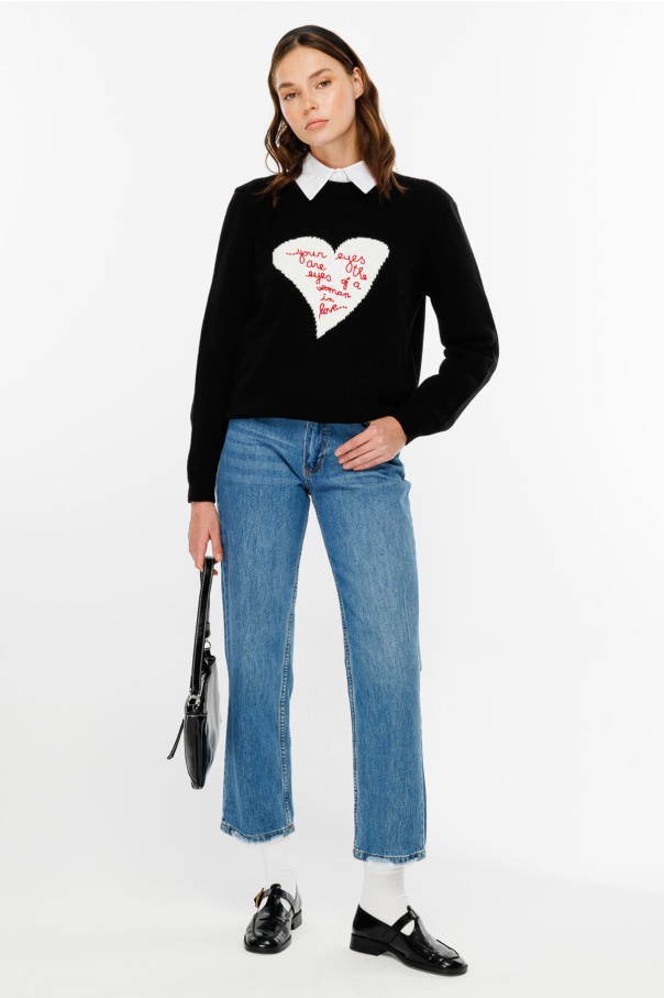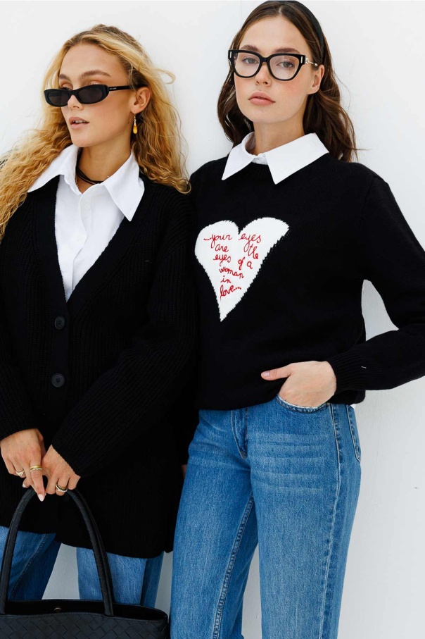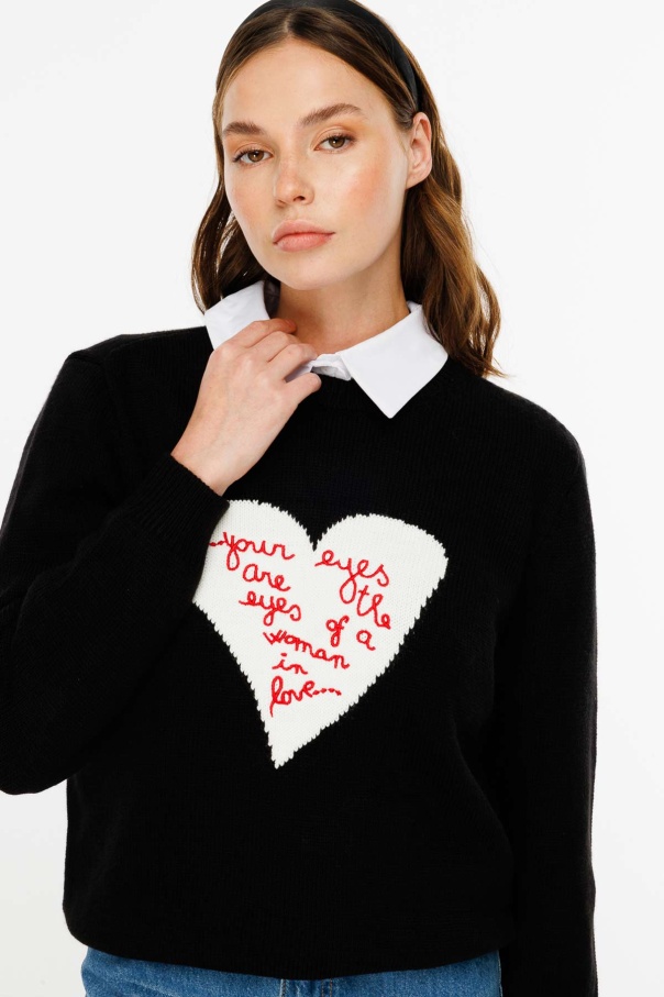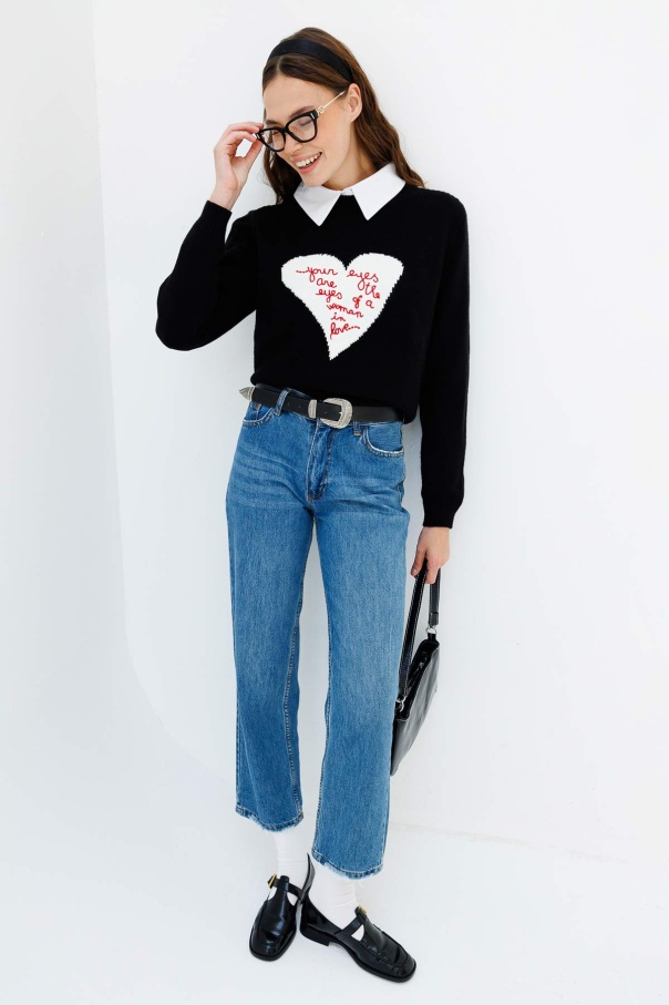 Nakışlı Love You Siyah Kazak