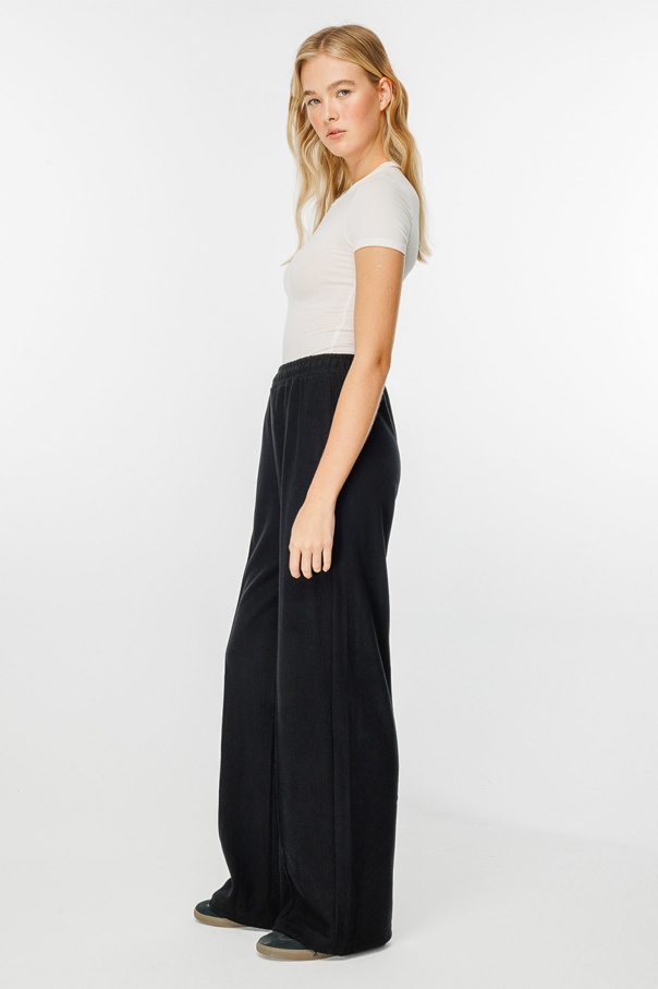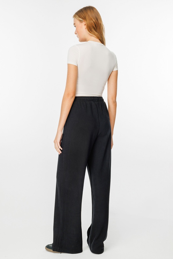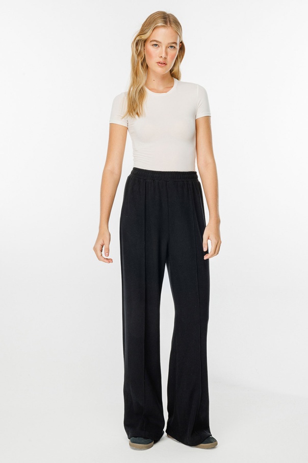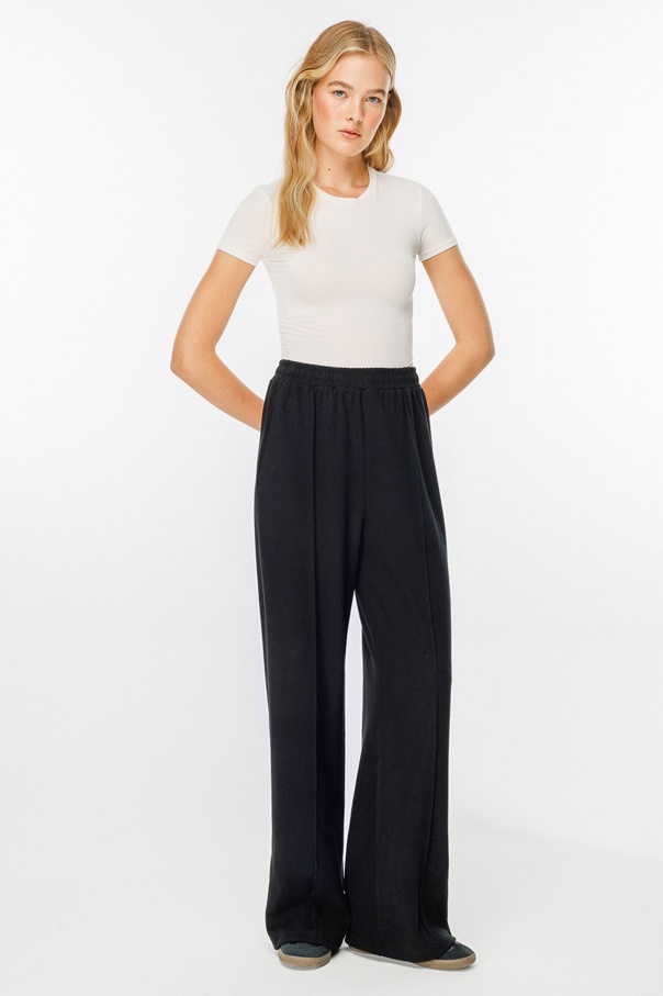 Nervürlü Siyah Krep Pantolon