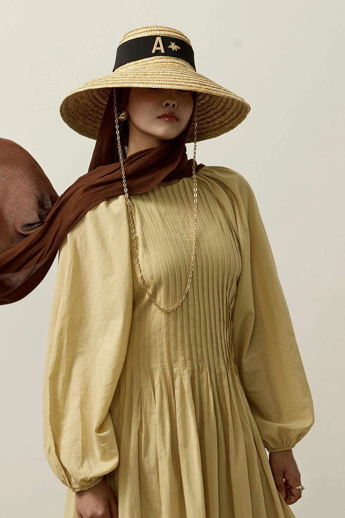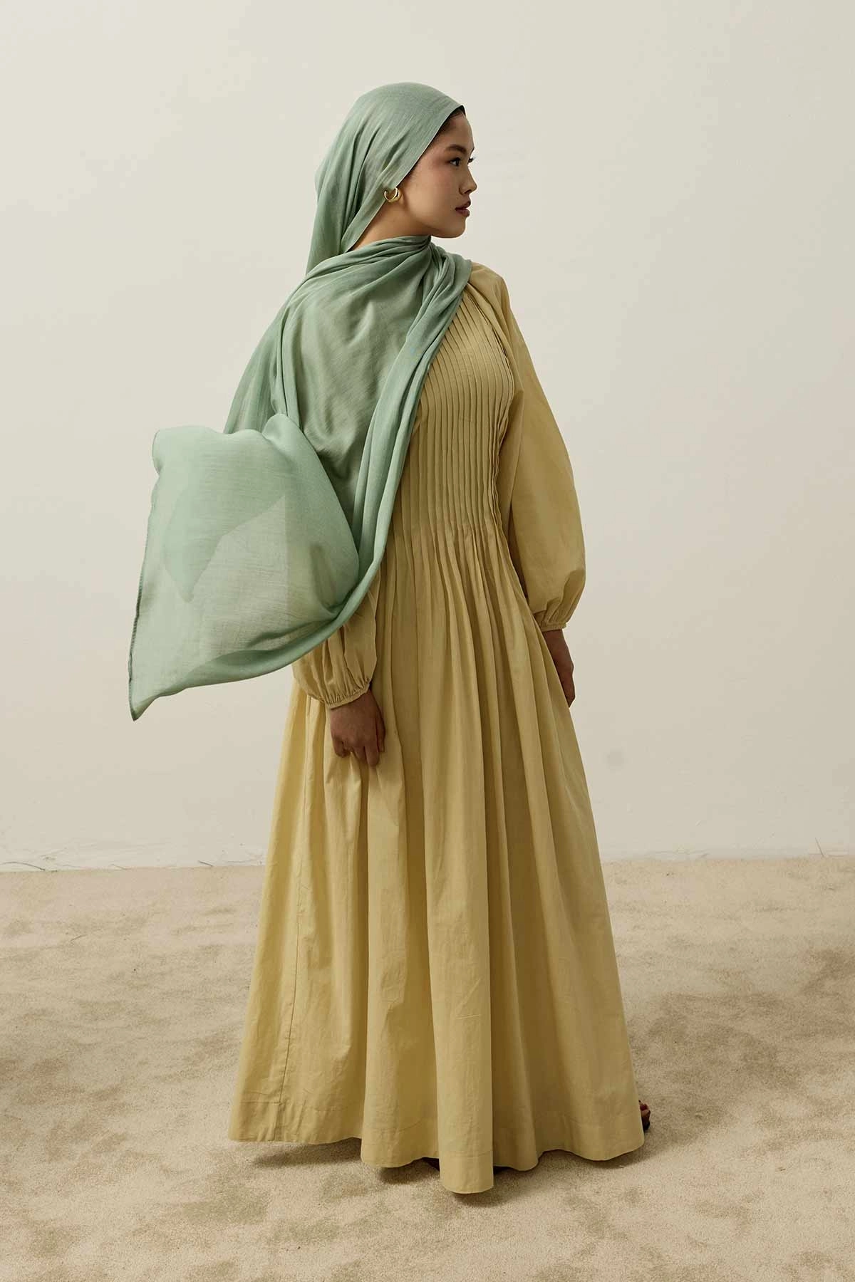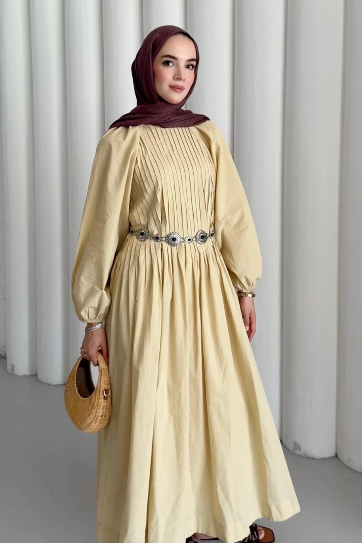 Nervürlü Pamuk Vual Butter Yellow Elbise
