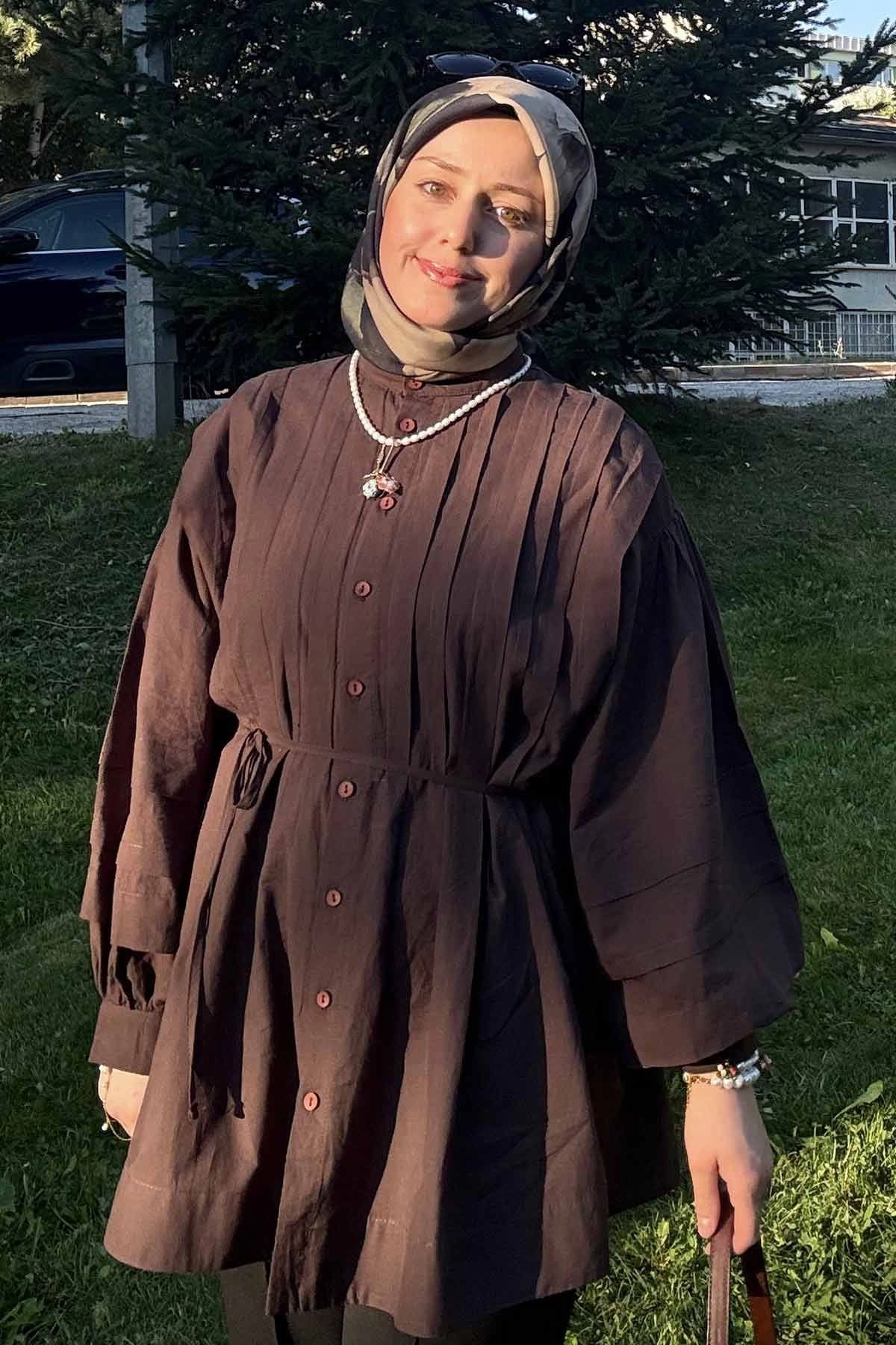 Nervürlü Pamuklu Vual Kahve Gömlek