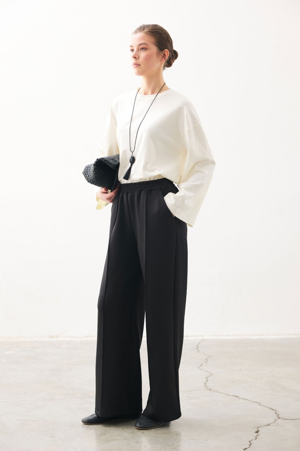 Nervürlü Scuba Siyah Pantolon