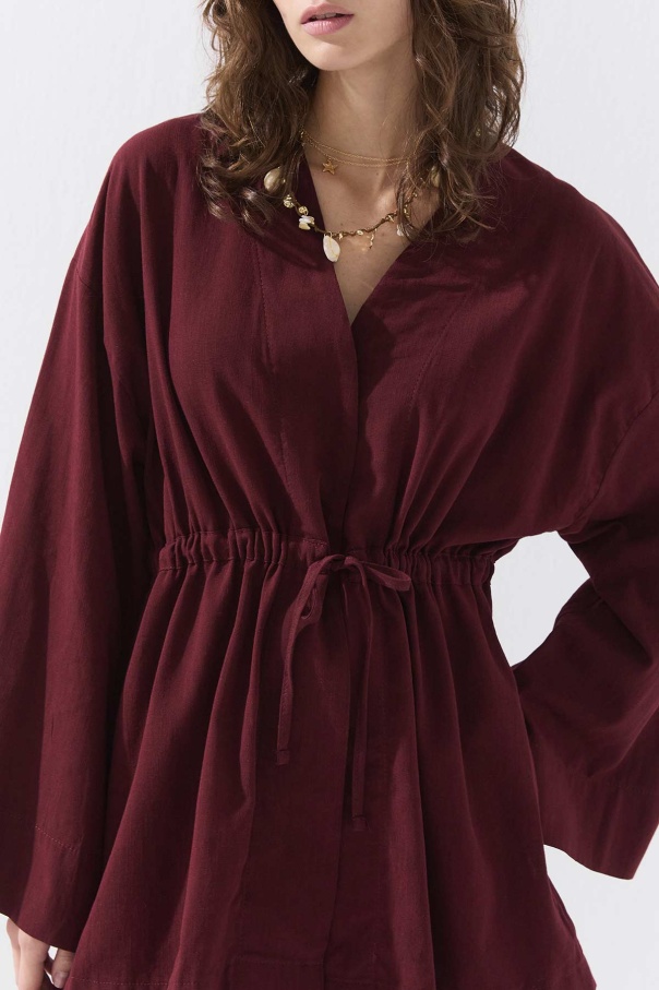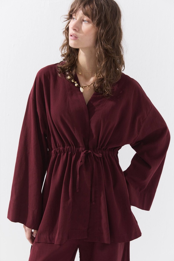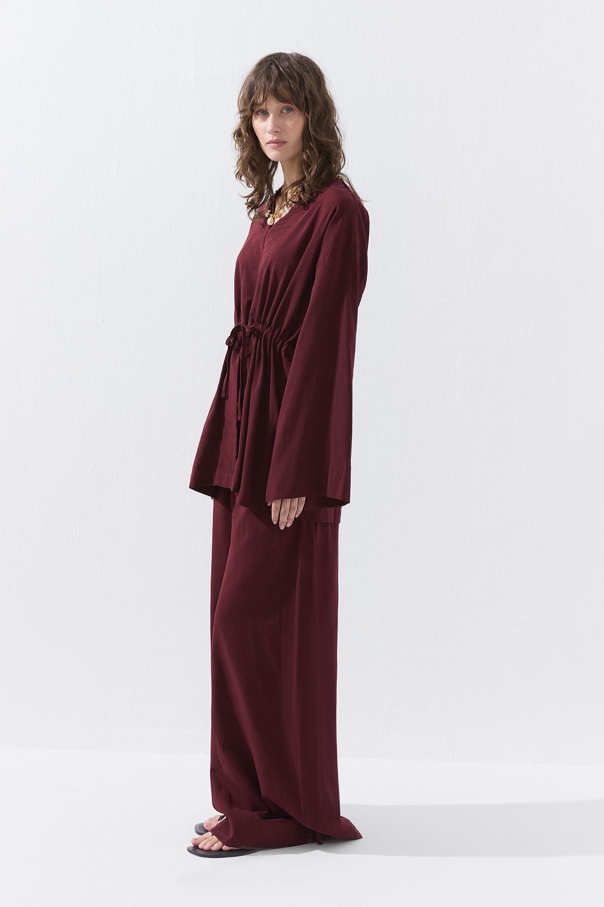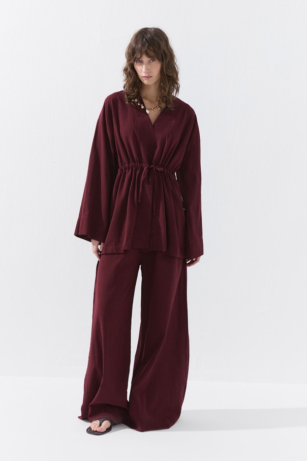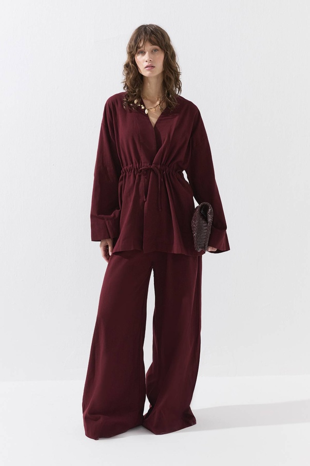 Önden Bağlama Detaylı Bordo Kimono Pantolon Takım