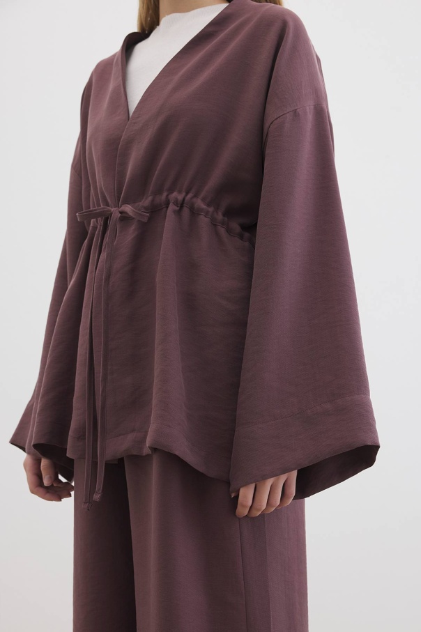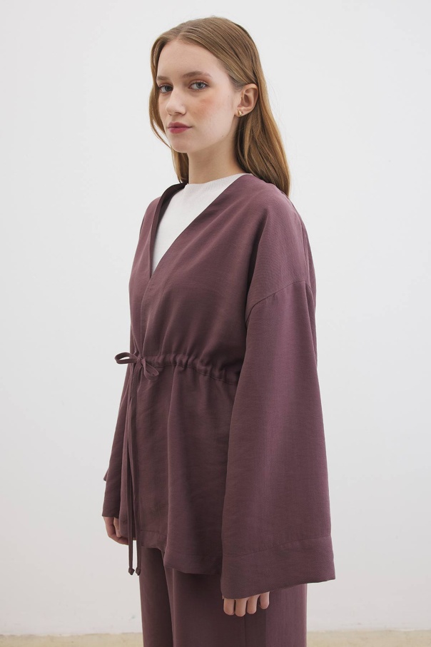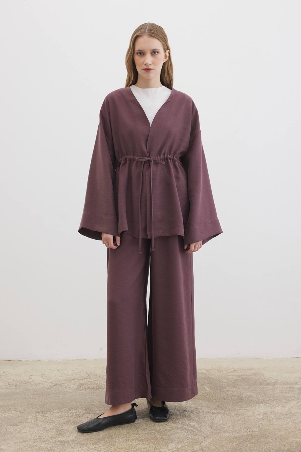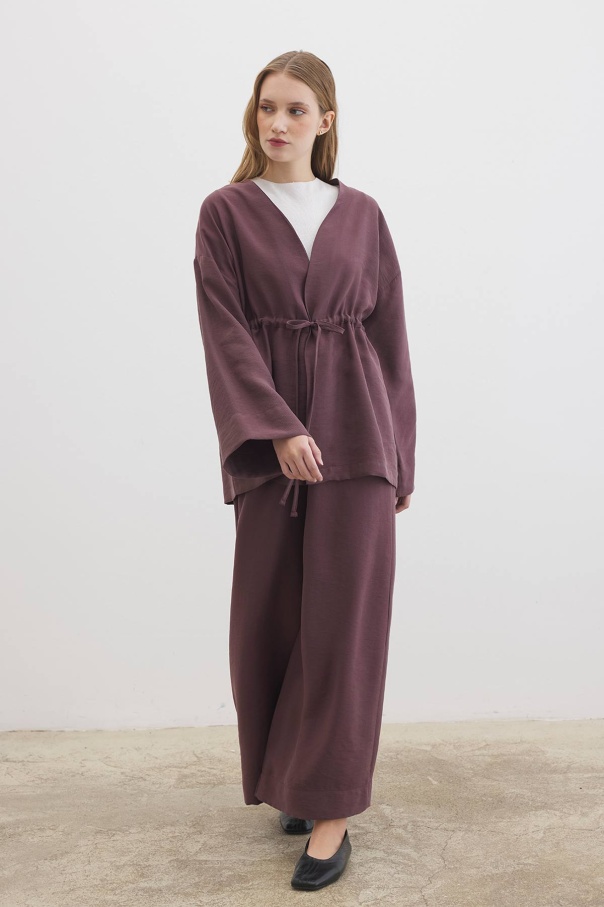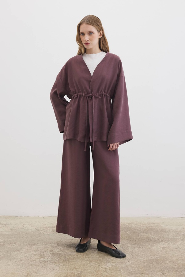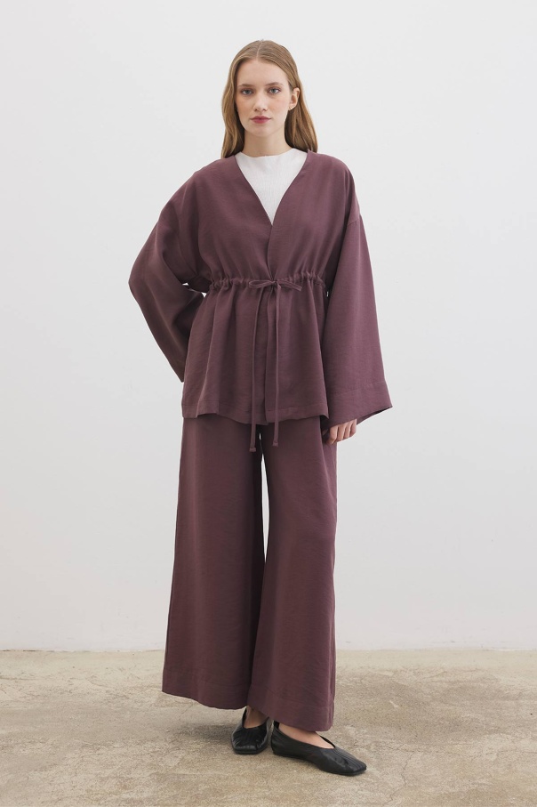 Önden Bağlama Detaylı Çikolata Kimono Pantolon Takım