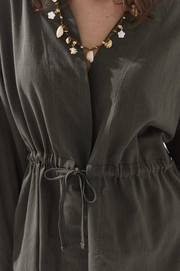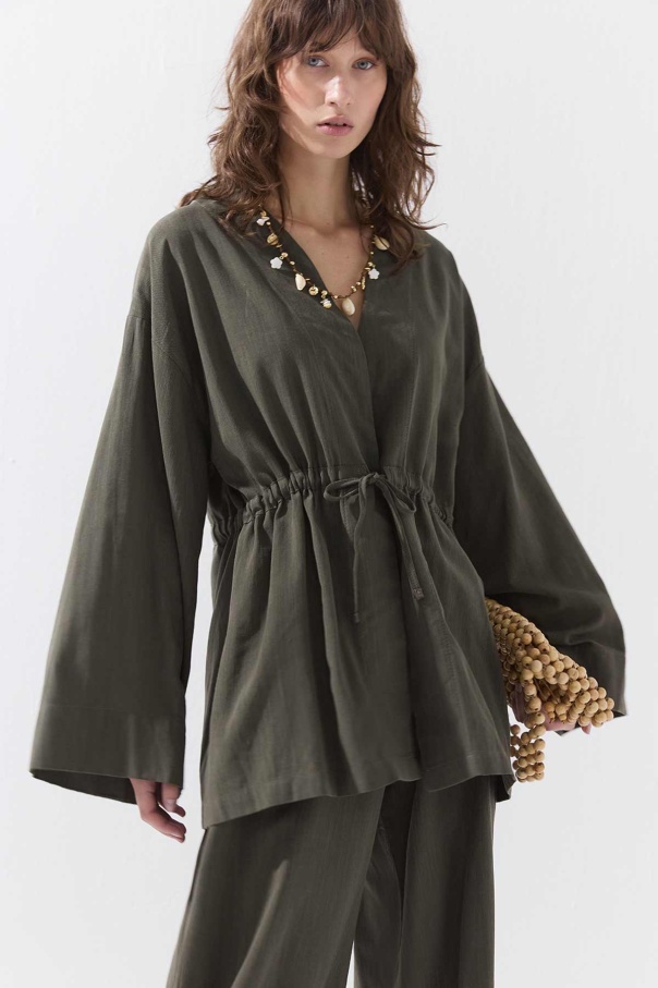 Önden Bağlama Detaylı Haki Kimono Pantolon Takım