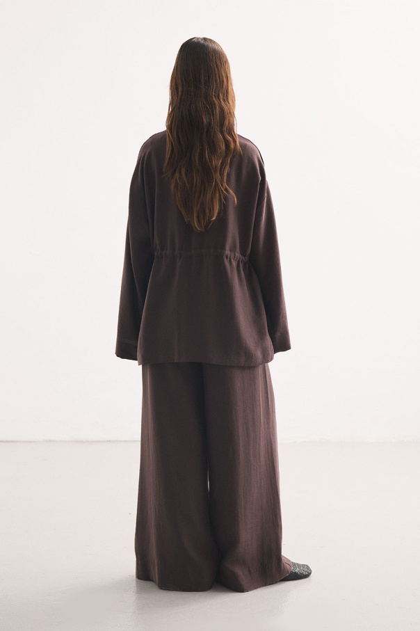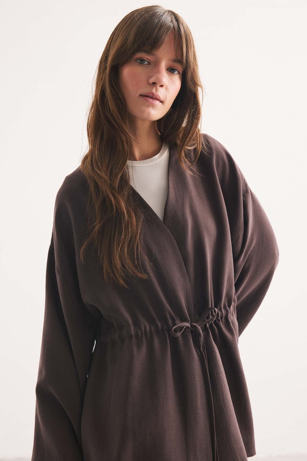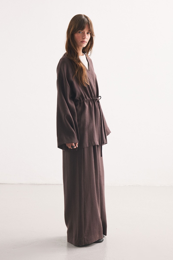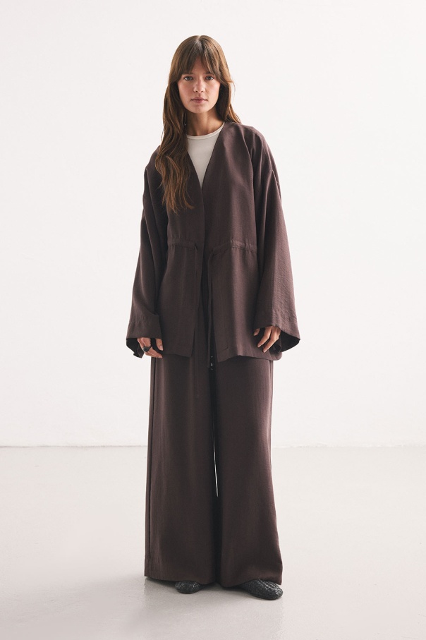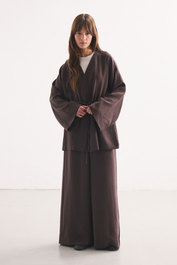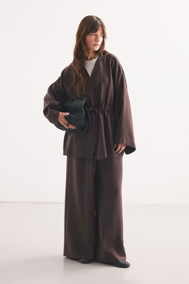 Önden Bağlama Detaylı Kahve Kimono Pantolon Takım