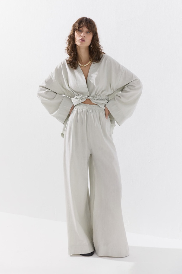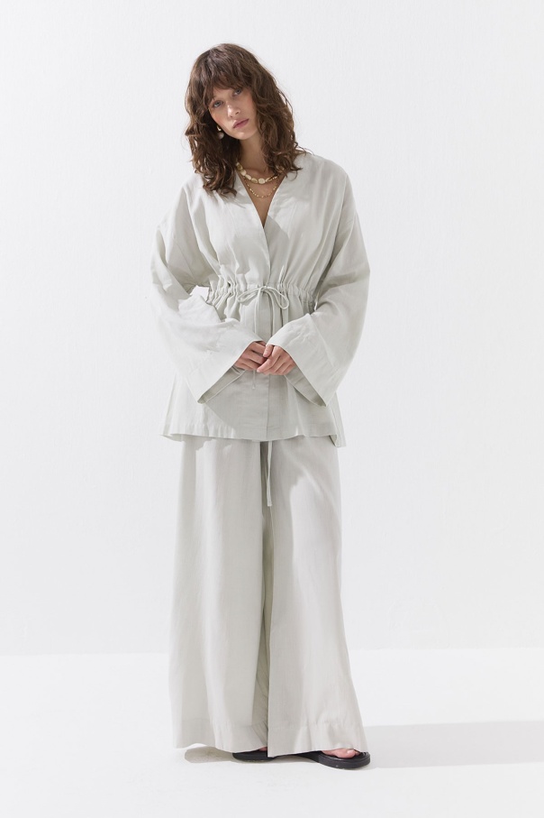 Önden Bağlama Detaylı Mint Yeşili Kimono Pantolon Takım