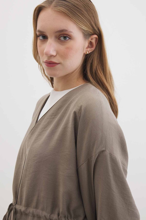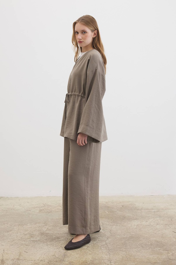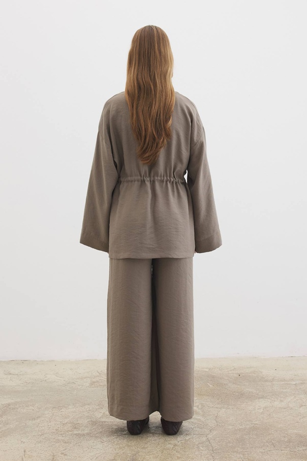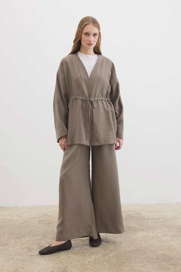 Önden Bağlama Detaylı Vizon Kimono Pantolon Takım