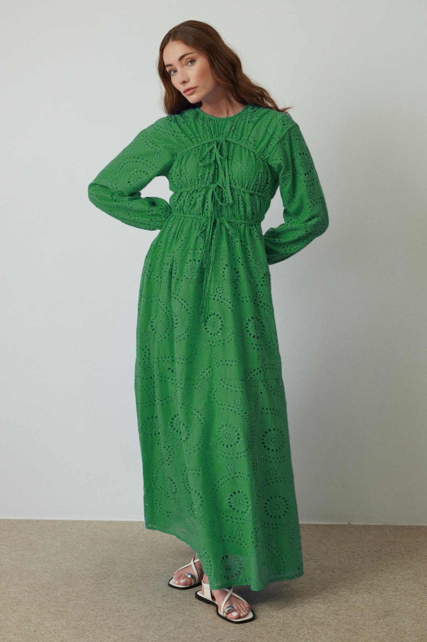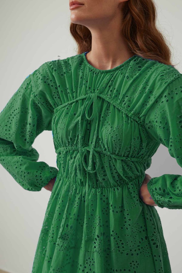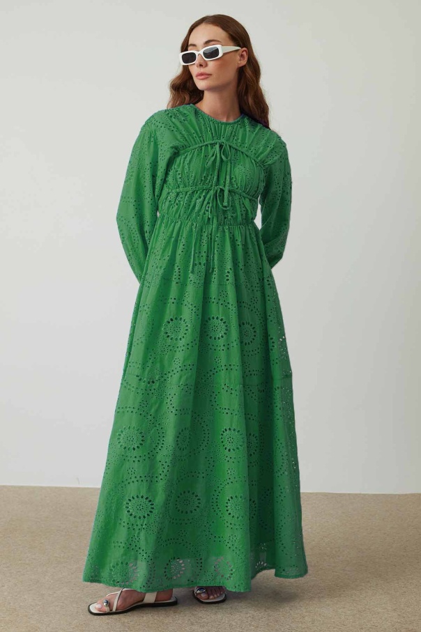 Önden Bağlama Detaylı Yeşil Petit Brode Elbise