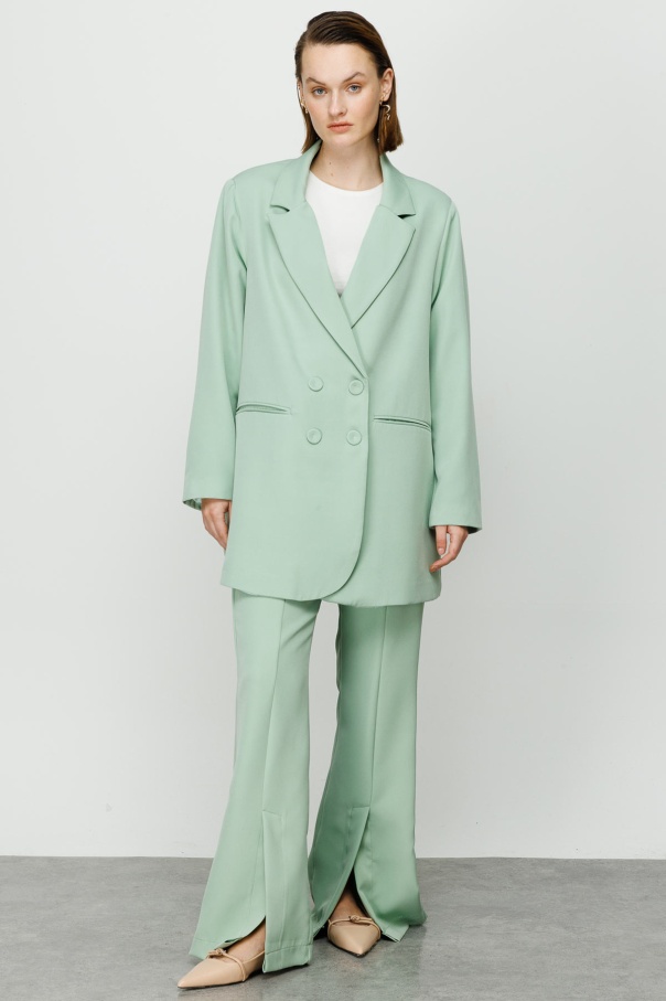 Önden Yırtmaçlı Yüksek Bel Çağla Pantolon