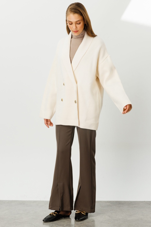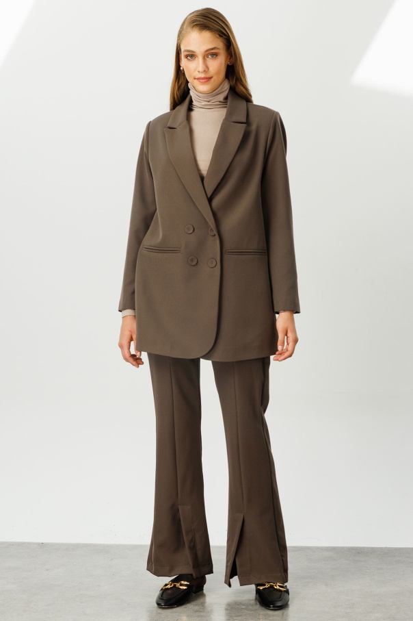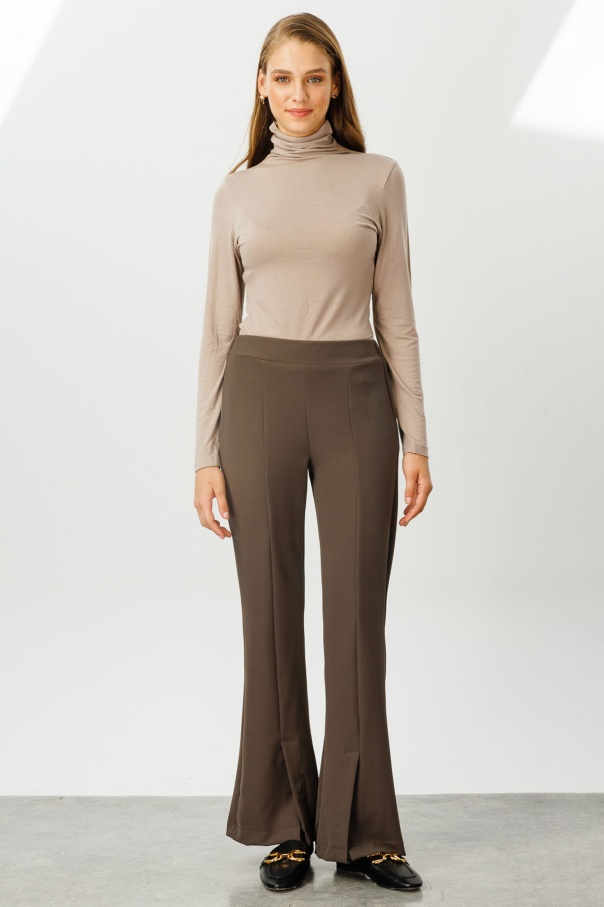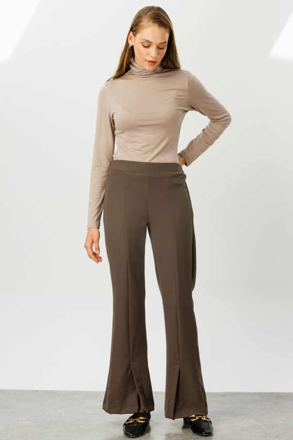 Önden Yırtmaçlı Yüksek Bel Kahve Pantolon