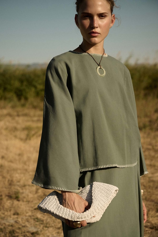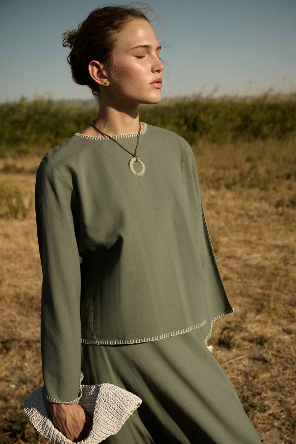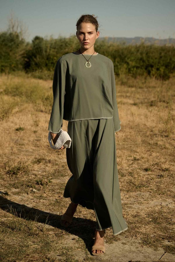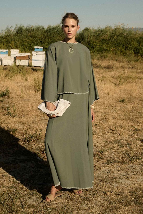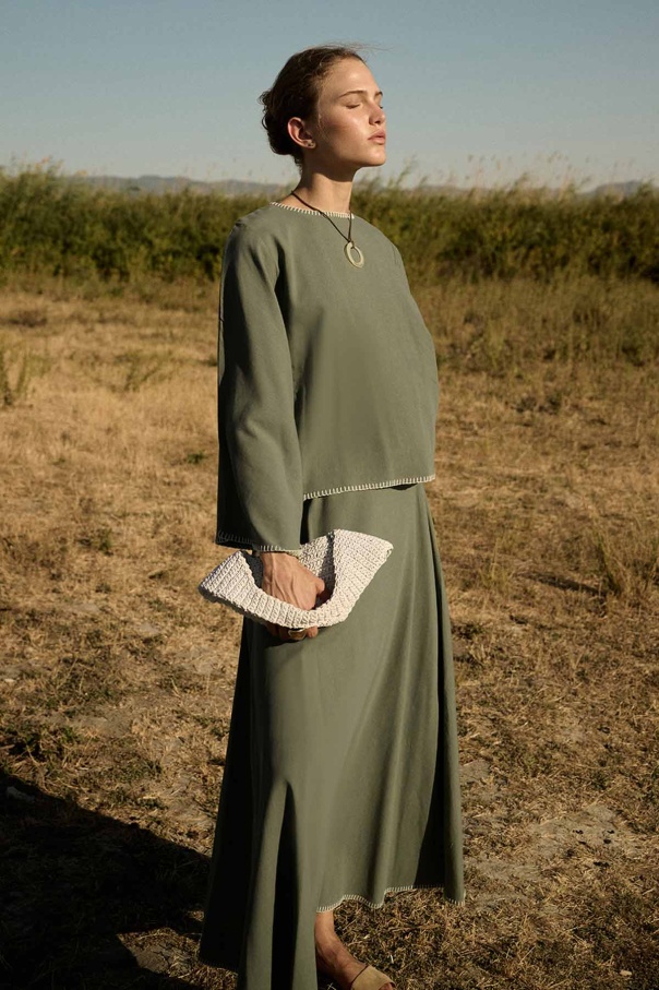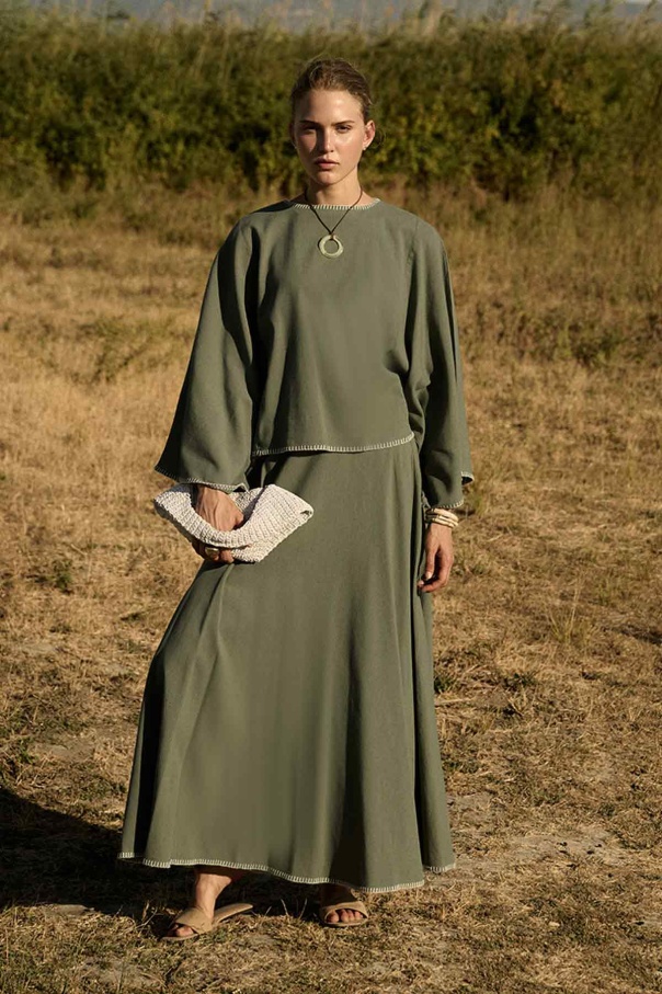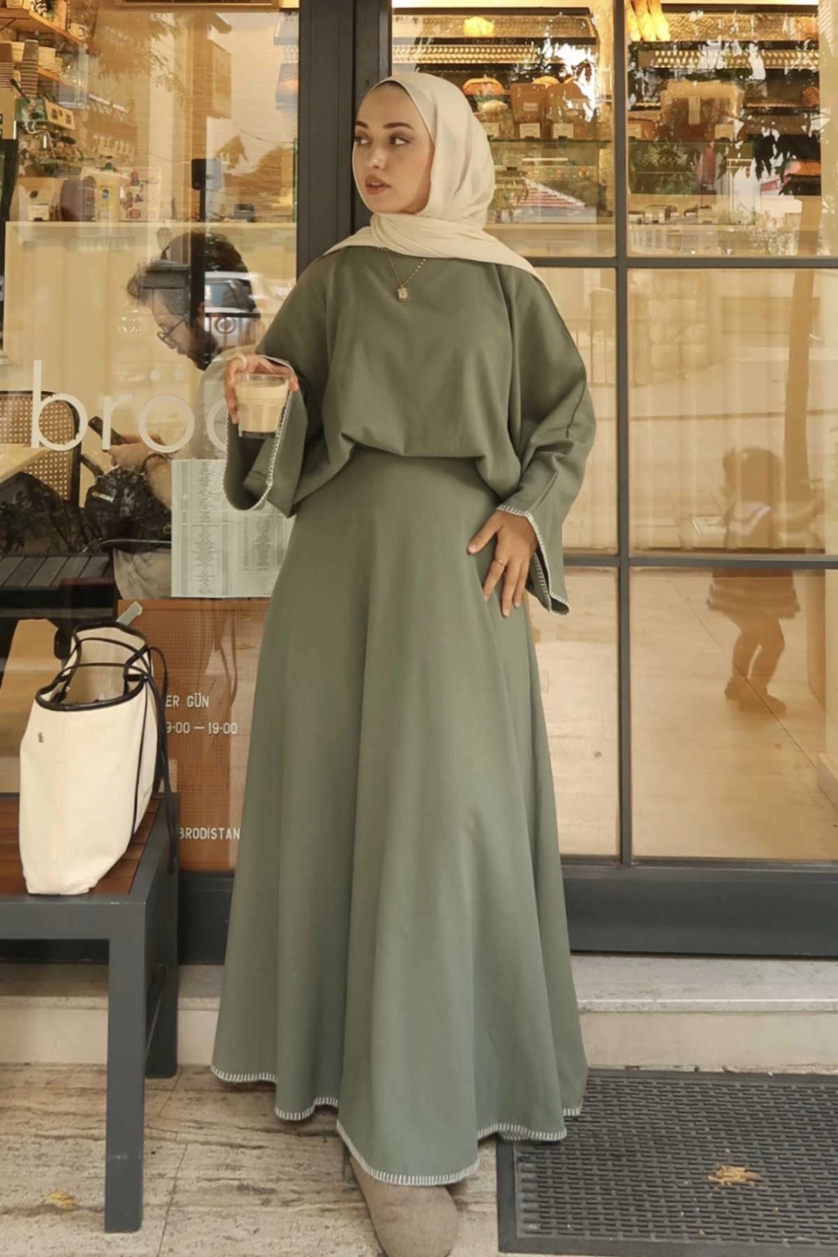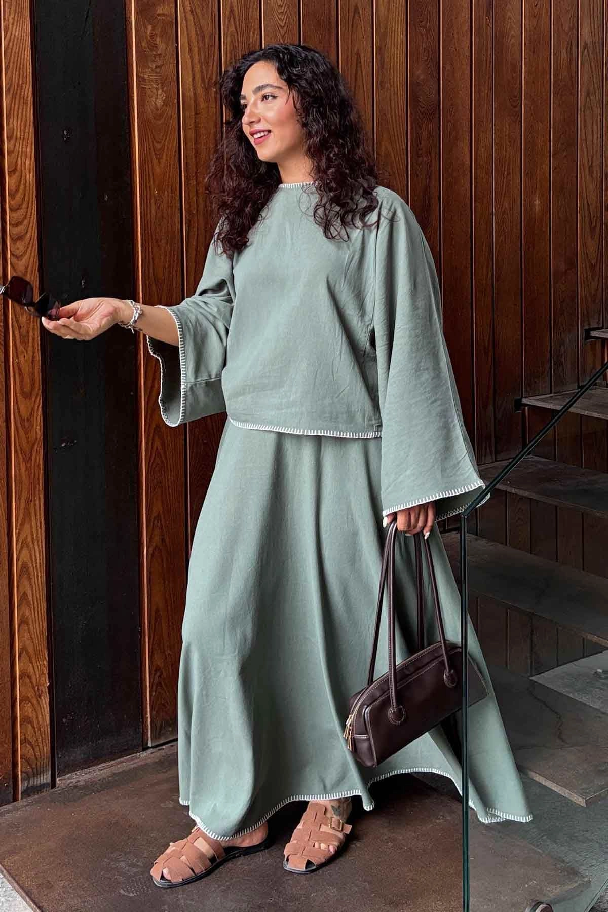 Organik Karışımlı Çoban Dikiş Detaylı Çağla Etekli Takım