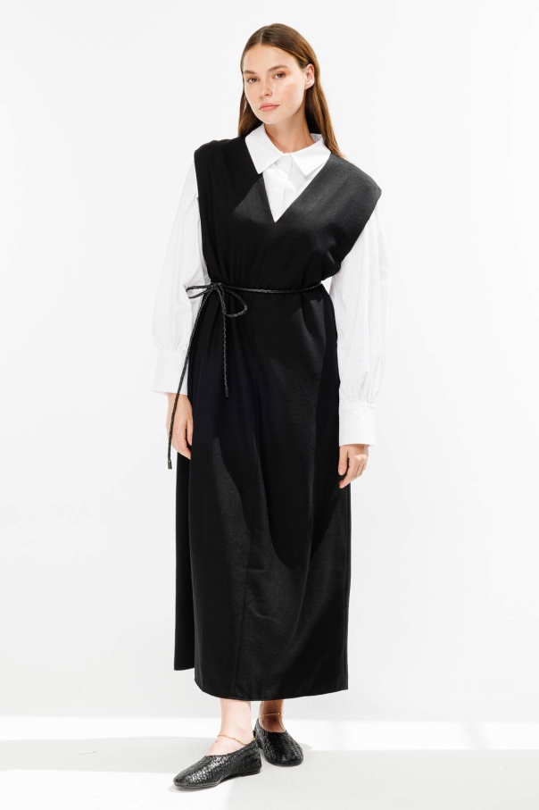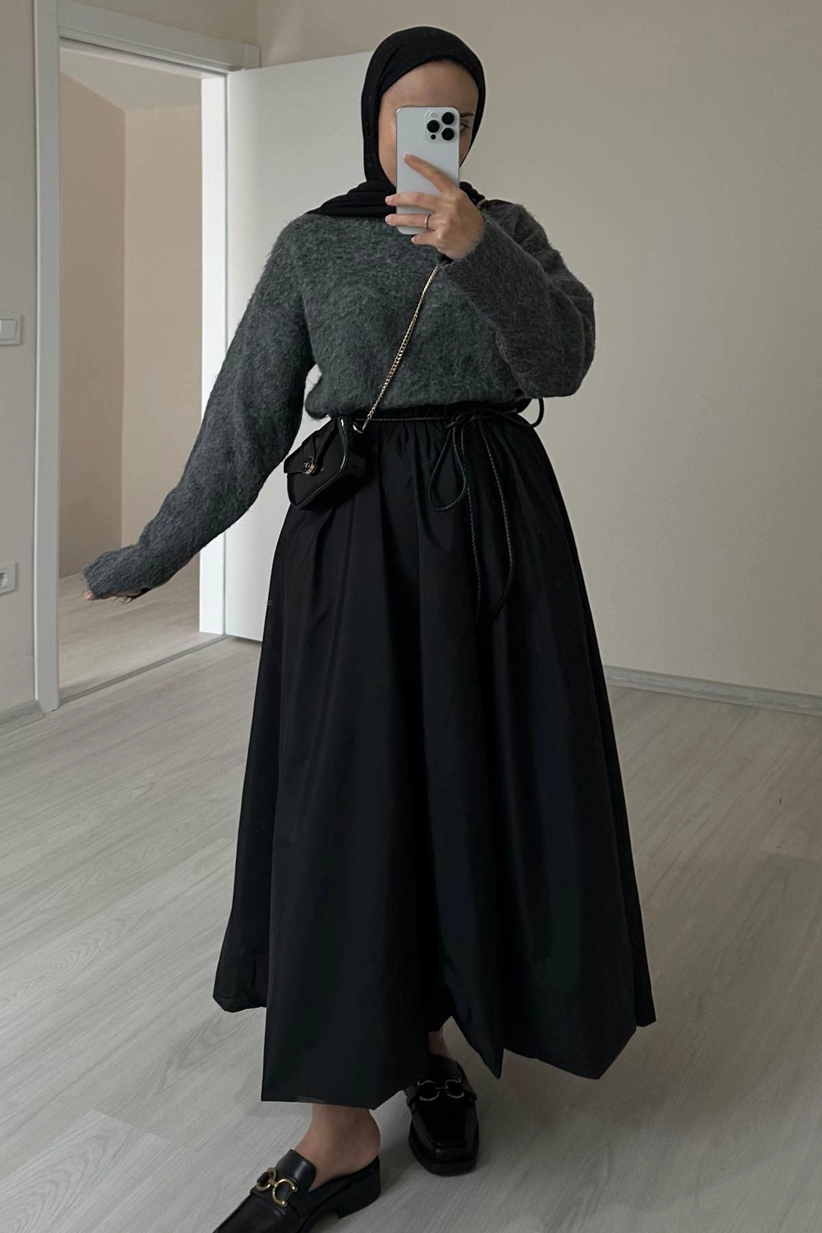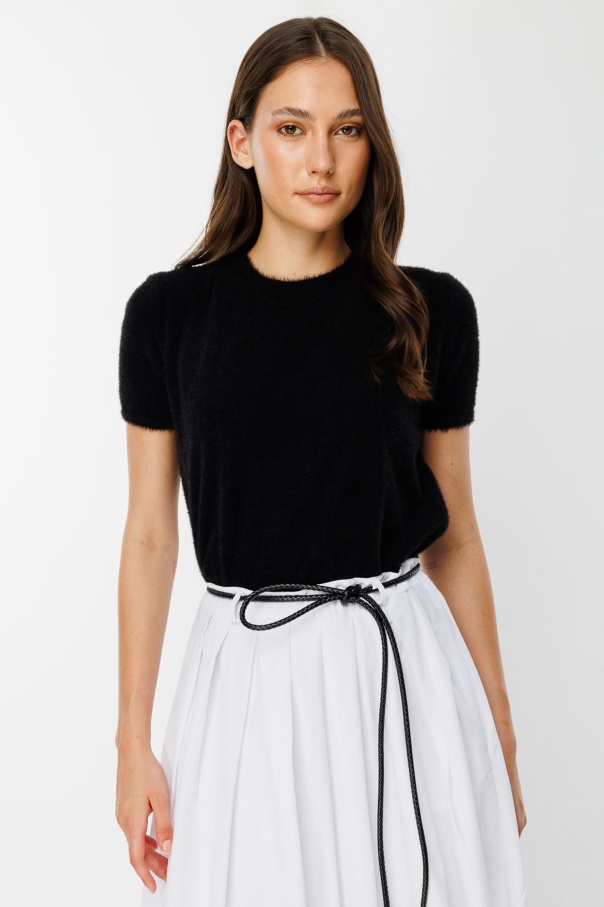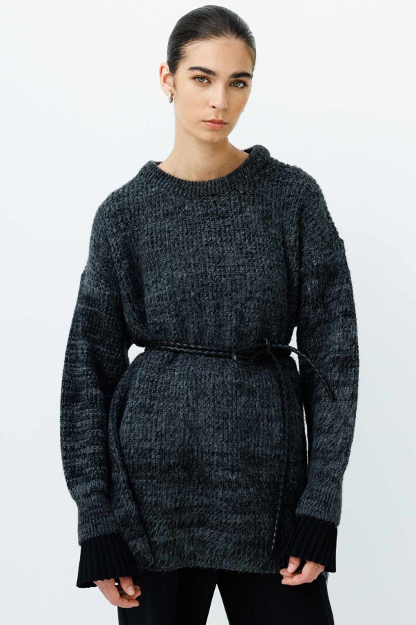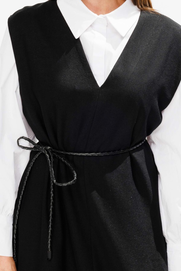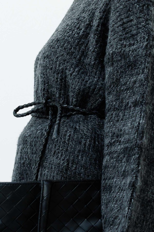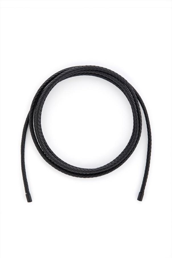 Örgü Motifli İp Kordon Siyah Deri Kemer