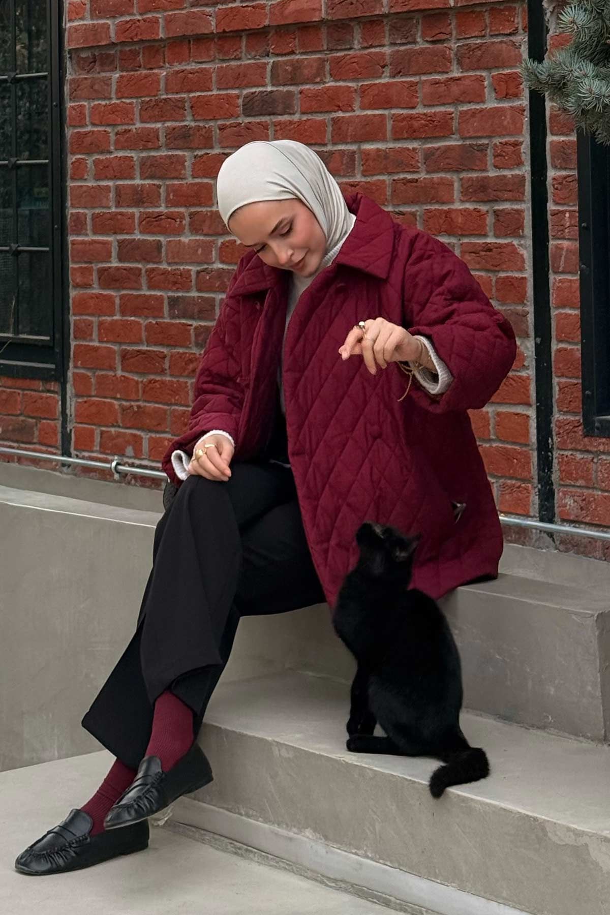 Düğmeli Kapitone Bordo Mont