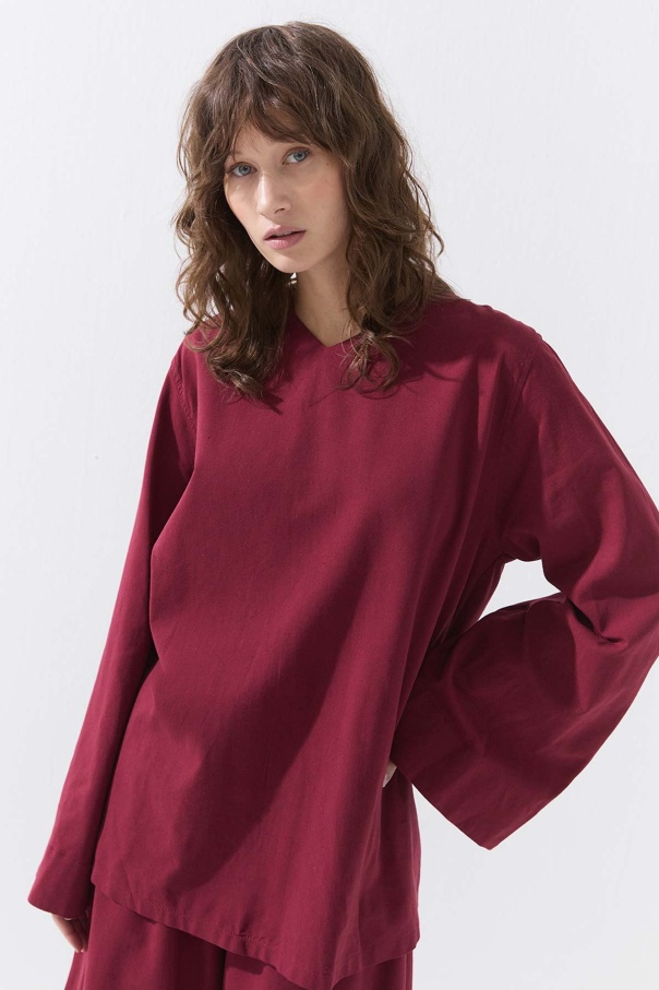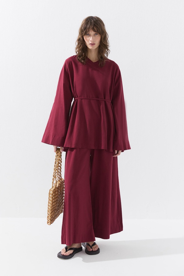 Pamuk Karışımlı Bluz Pantolon Bordo Takım