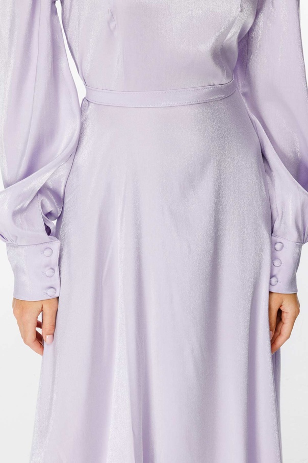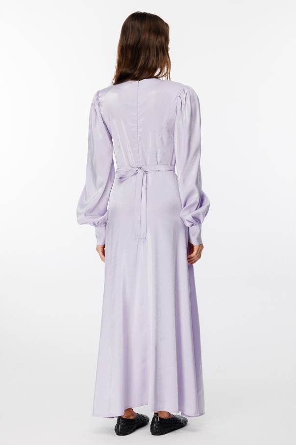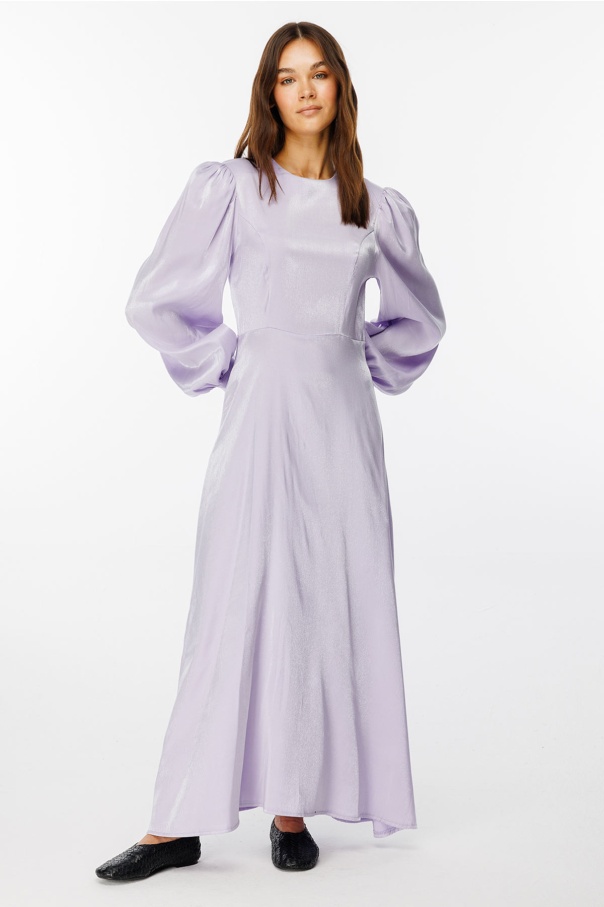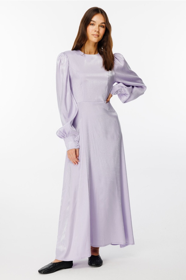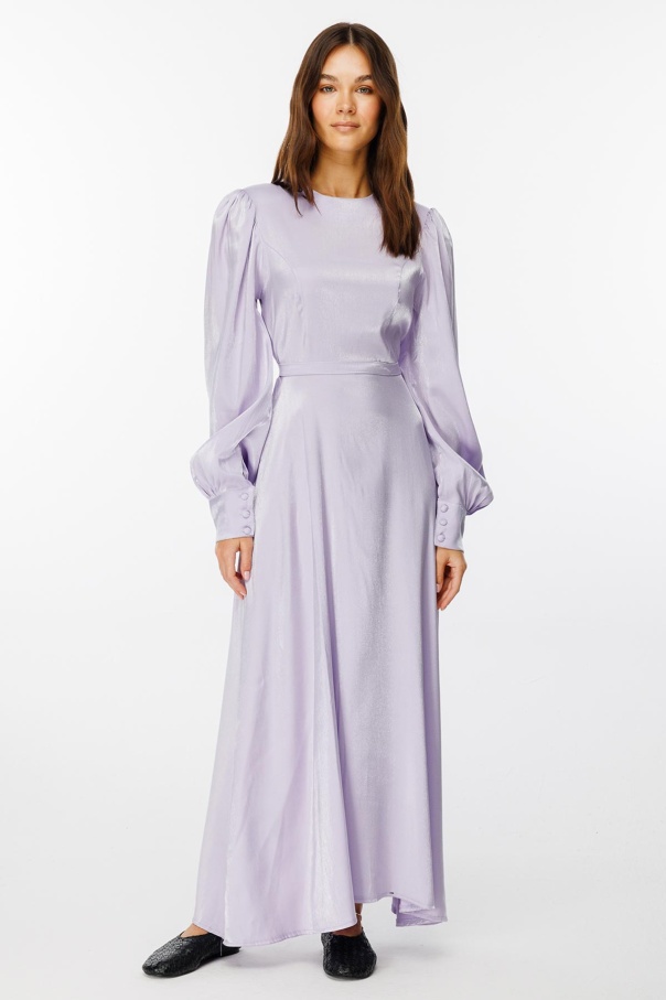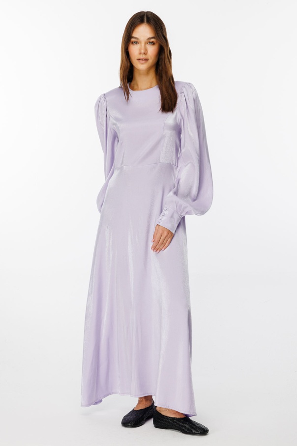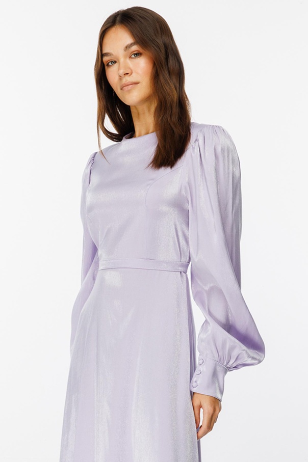 Parlak Dokulu Balon Kol Lila Elbise