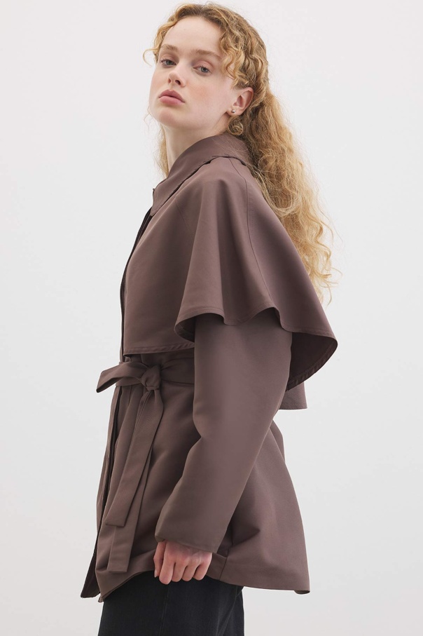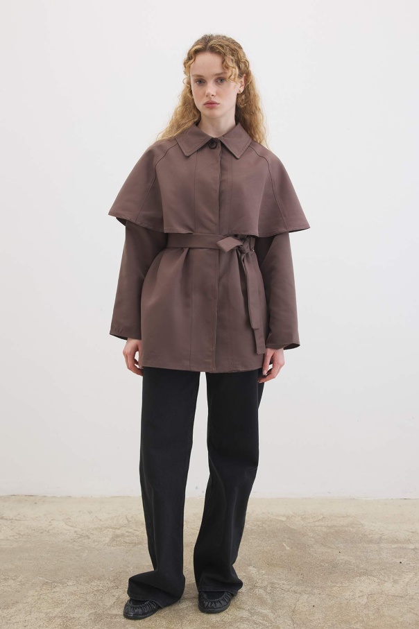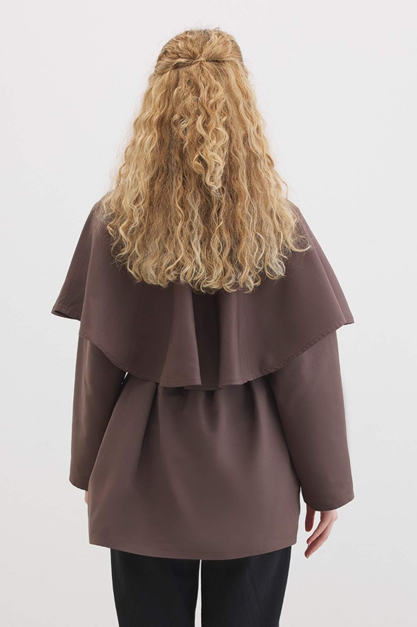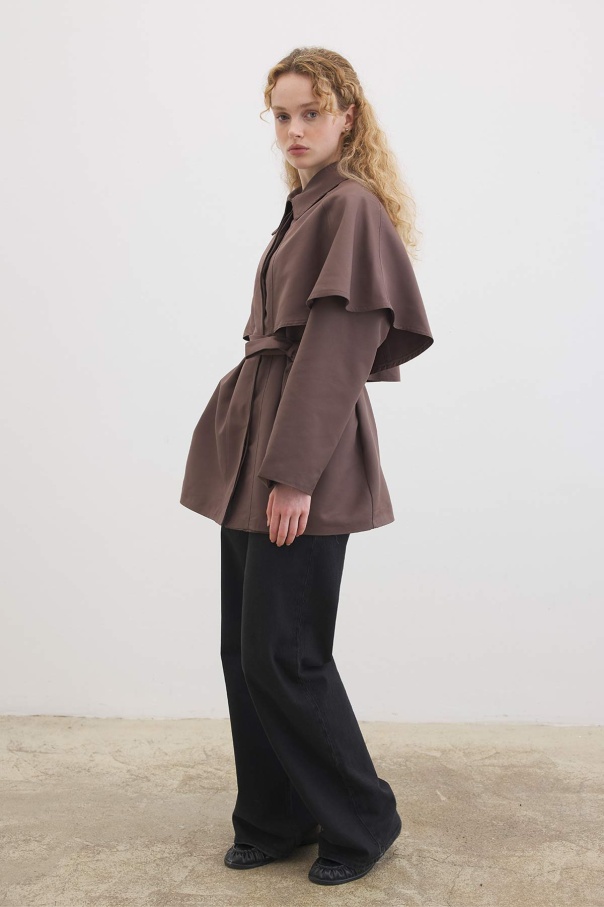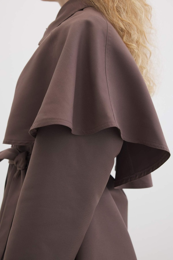 Pelerin Detaylı Çikolata Trençkot