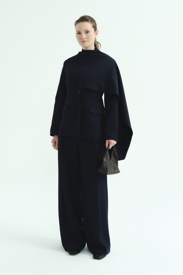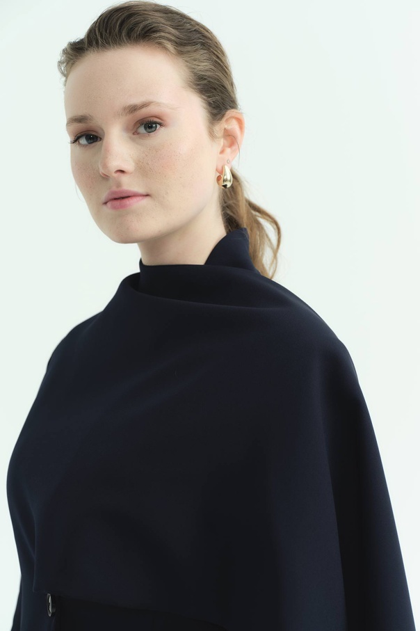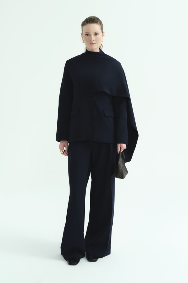 Pelerin Detaylı Lacivert Blazer Ceket
