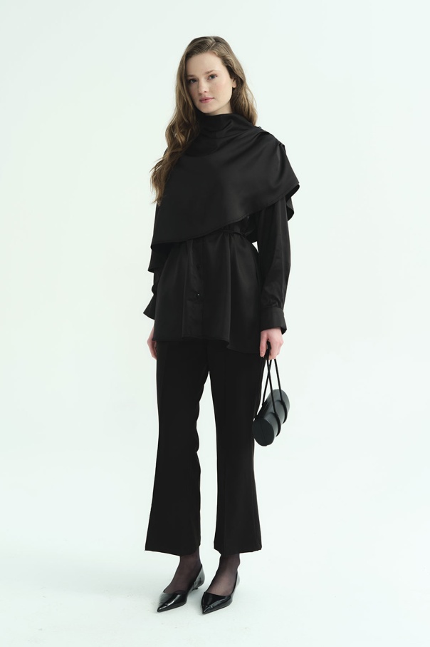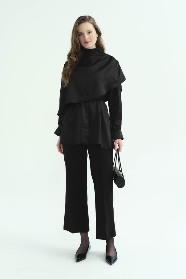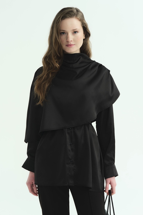 Pelerin Detaylı Siyah Gömlek