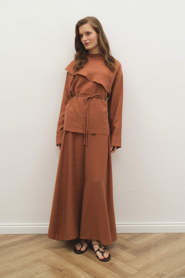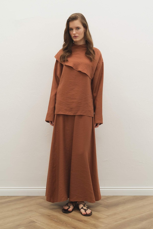 Pelerin Detaylı Tarçın Etek Takım