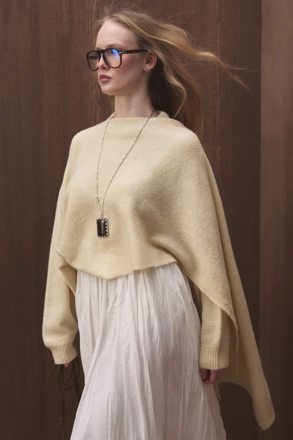 Pelerin Detaylı Triko Tereyağı Sarısı Kazak
