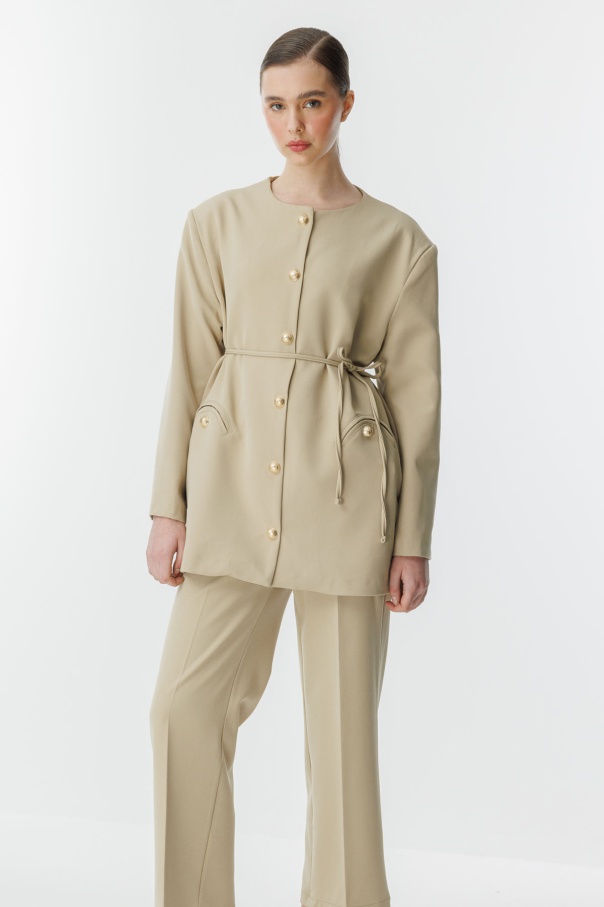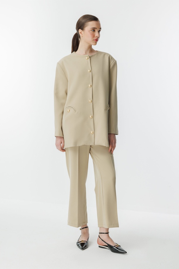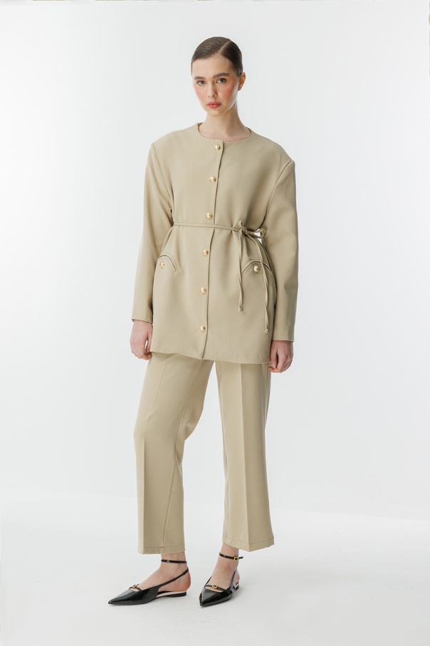 Peri Gold Düğme Detaylı Çağla Pantolon Takım