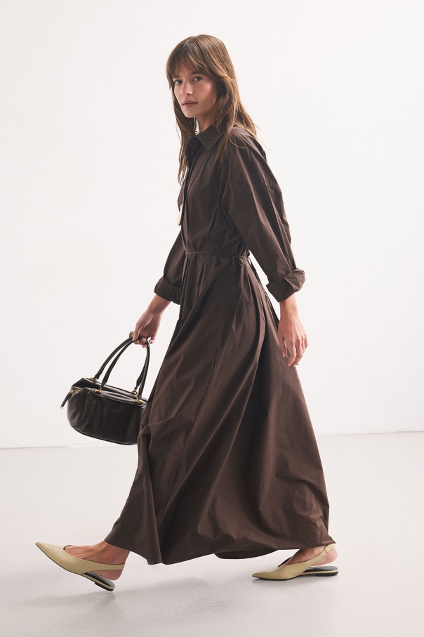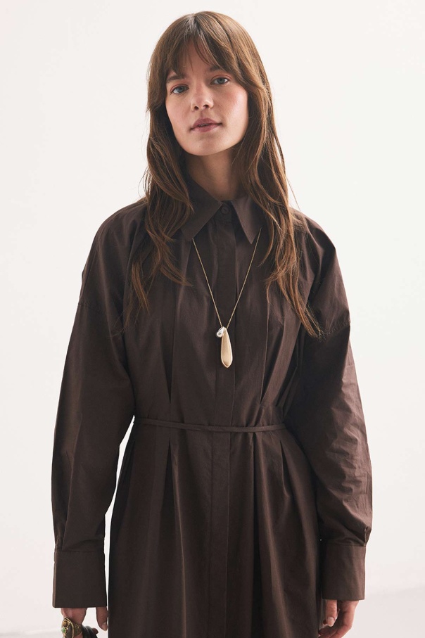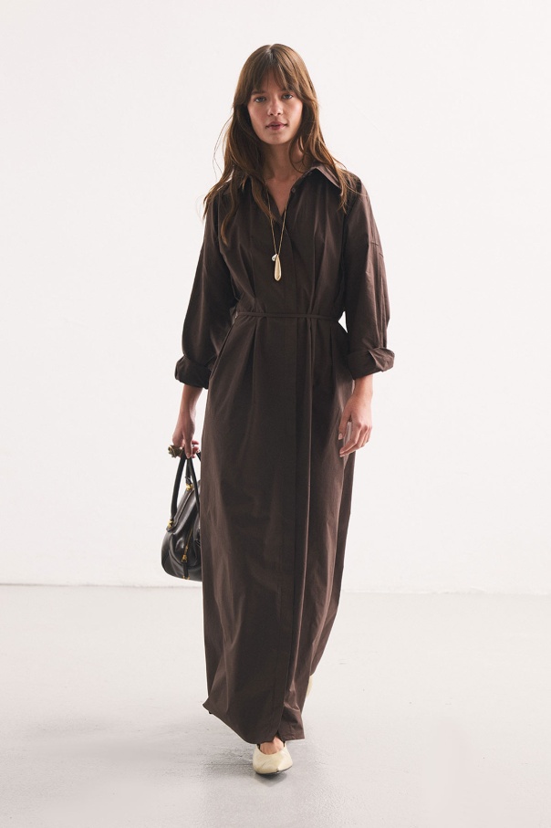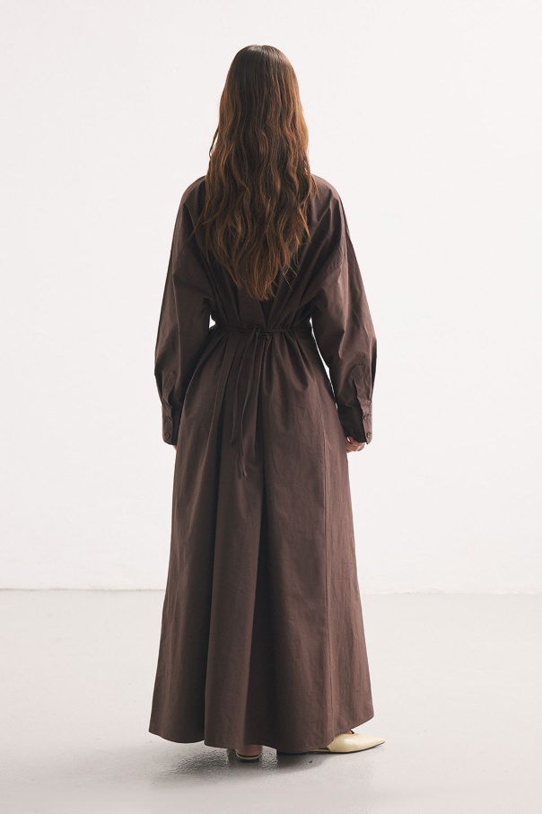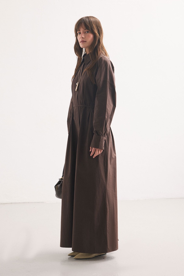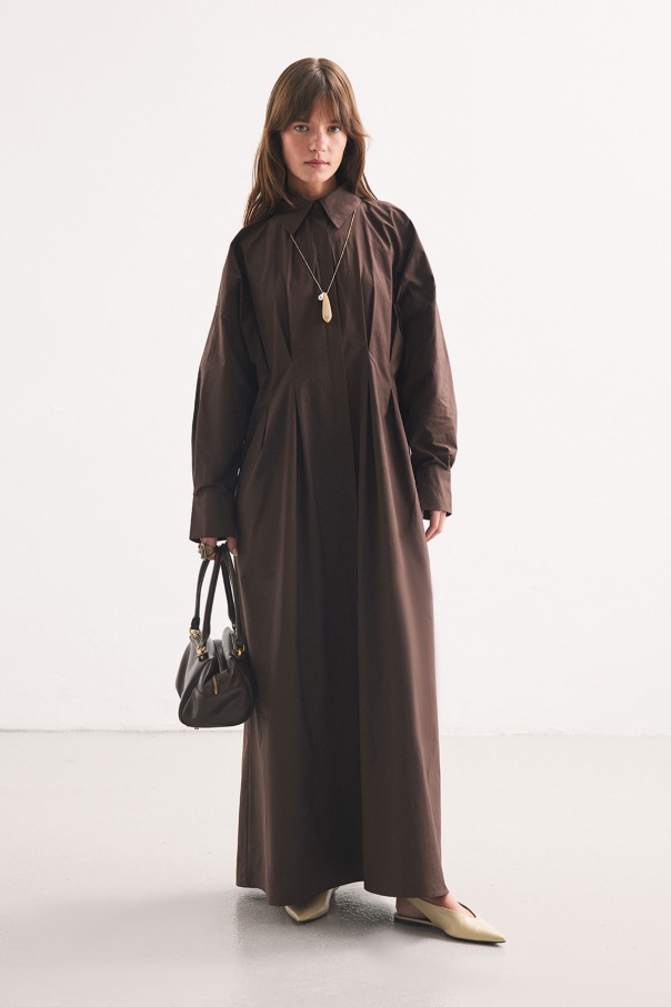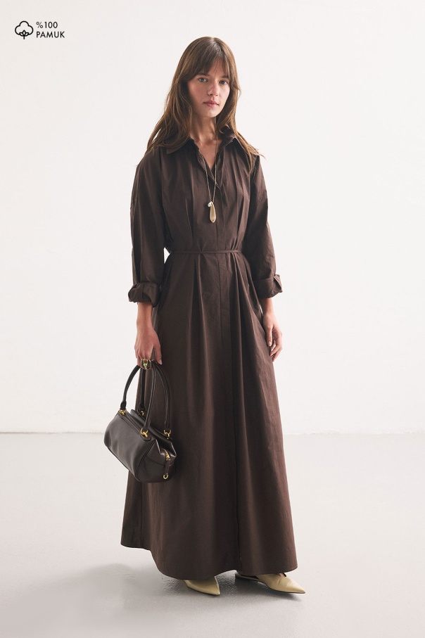 Pile Detaylı Kahve Gömlek Elbise
