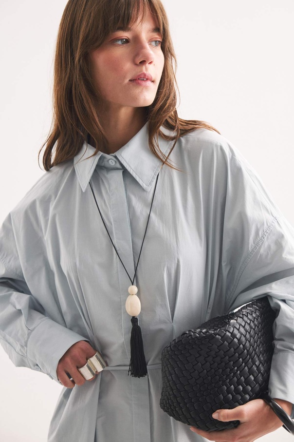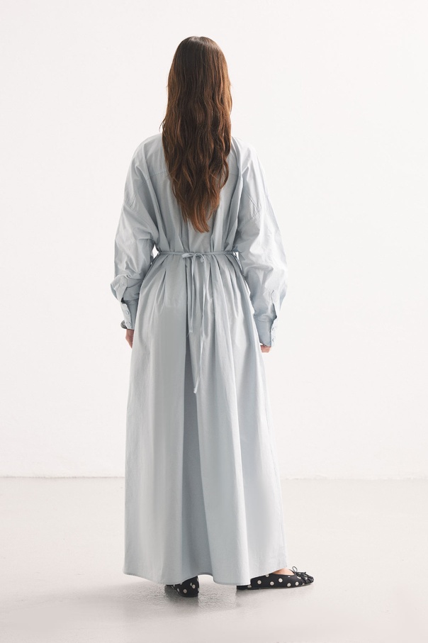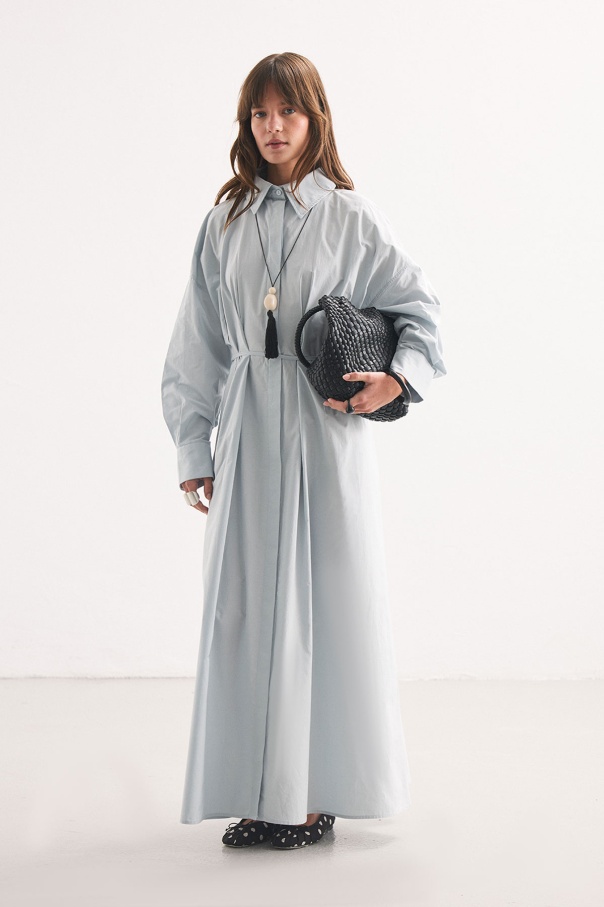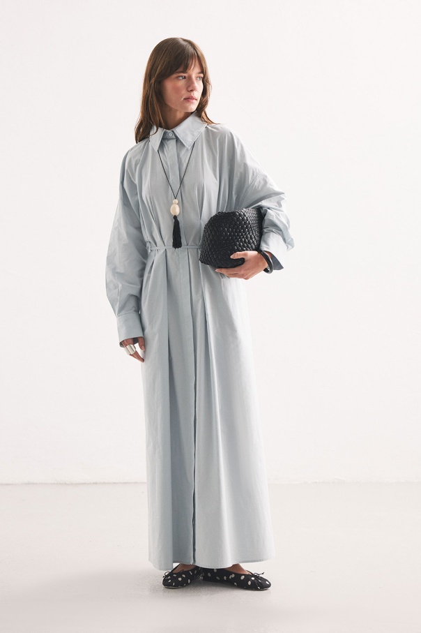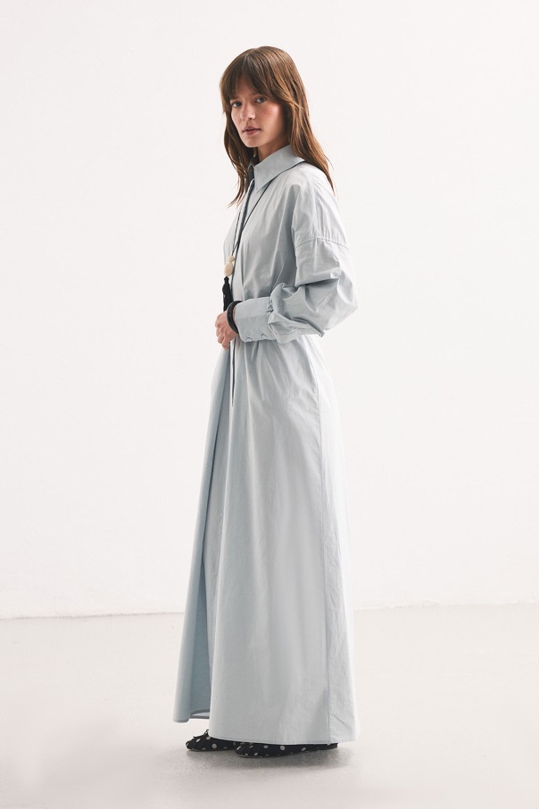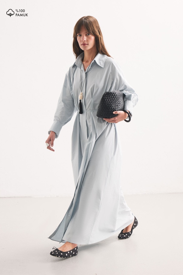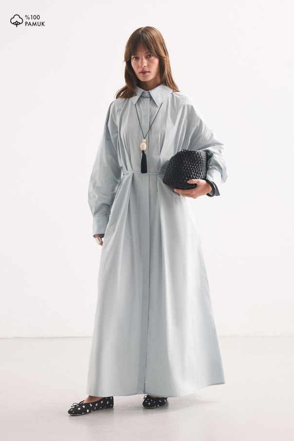 Pile Detaylı Soft Mavi Gömlek Elbise