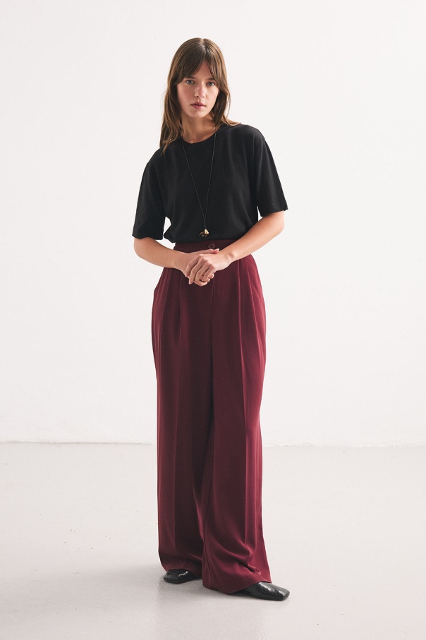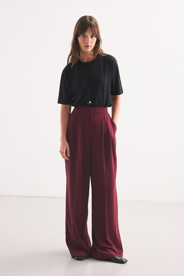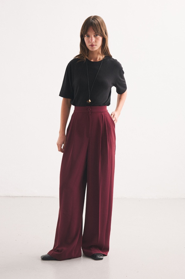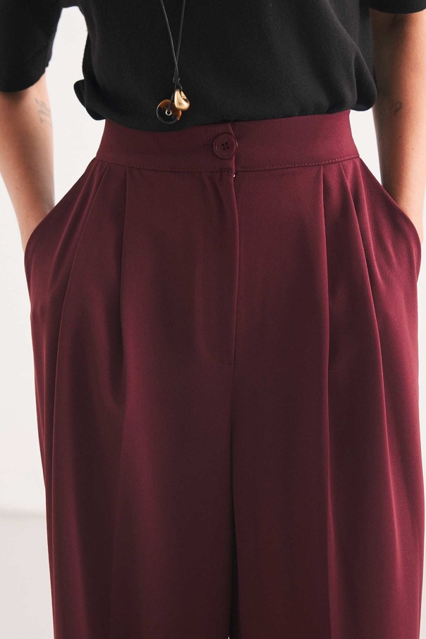 Pileli Palazzo Mürdüm Pantolon