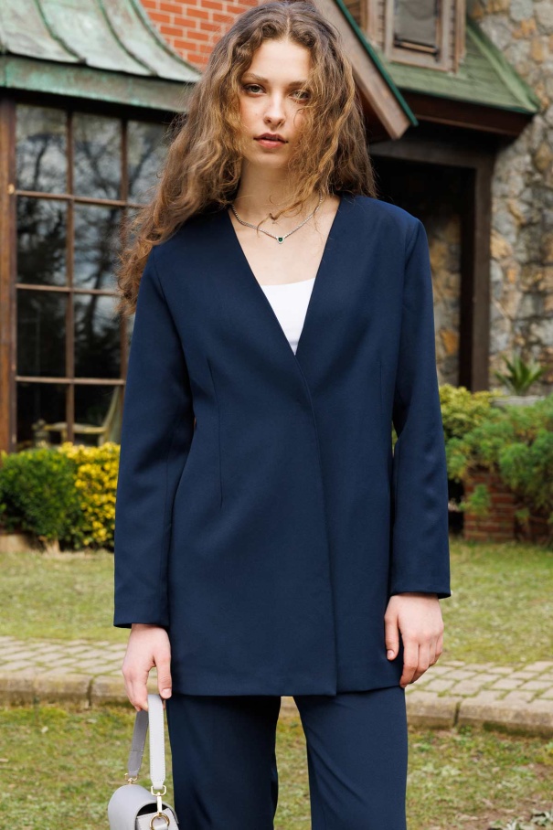 Pilise Aksesuarlı Blazer Lacivert Ceket